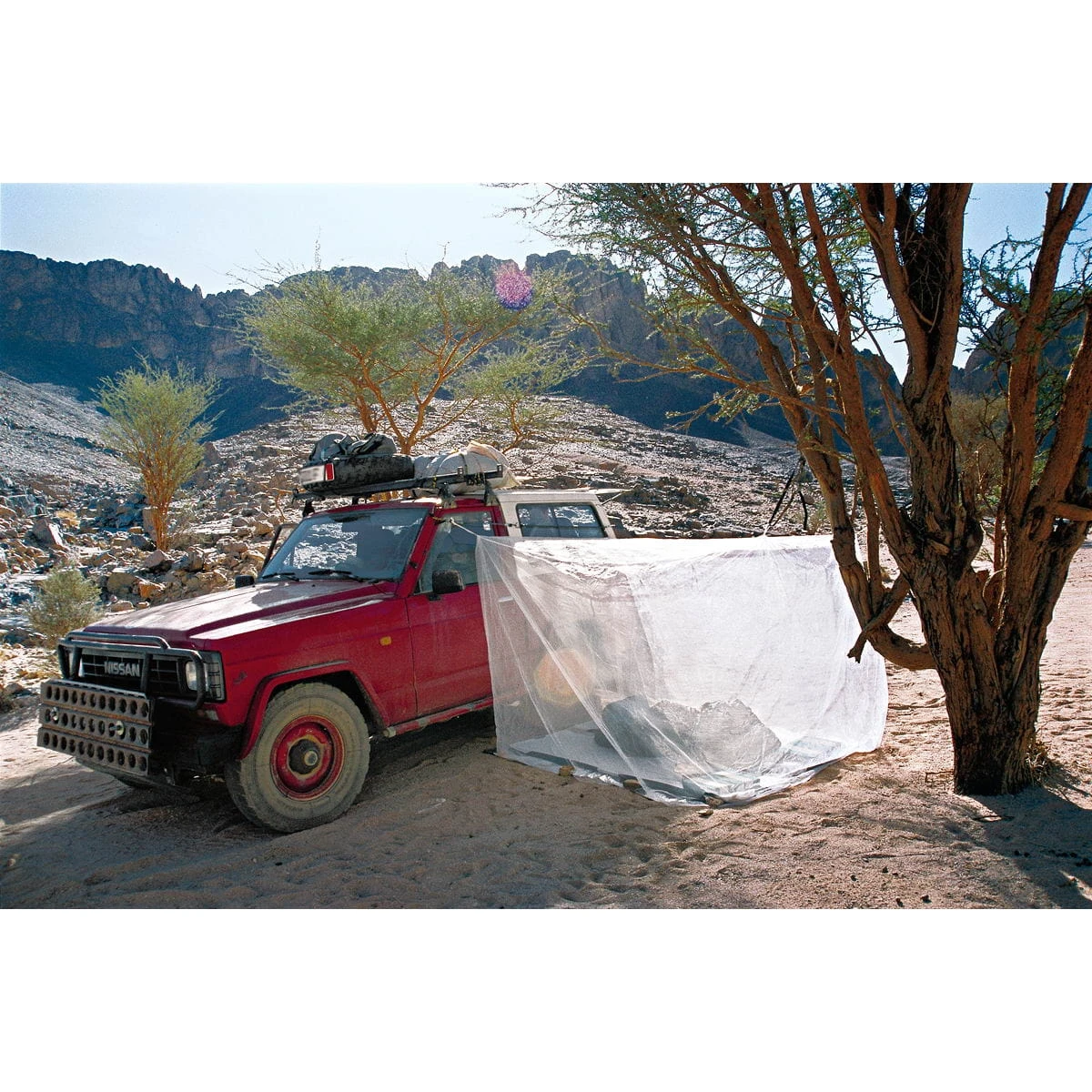 Kastenförmiges Moskitonetz Fine Mesh Box Modell 1 von Brettschneider für eine Person aus feinstem und besonders leichtem Polyamid. Der dünne Faden ermöglicht – trotz der kleinen Maschenweite – eine verhältnismäßig gute Luftzirkulation. Rundum geschlossen. Das Moskitonetz hat keinen seitlichen Eingang, man hebt es kurz an um unter das Netz zu kommen. Ein zusätzlicher Eingang birgt die Gefahr, dass man diesen aus Versehen nicht schließt und somit Mücken und andere Flugwesen in das Netz gelangen können.