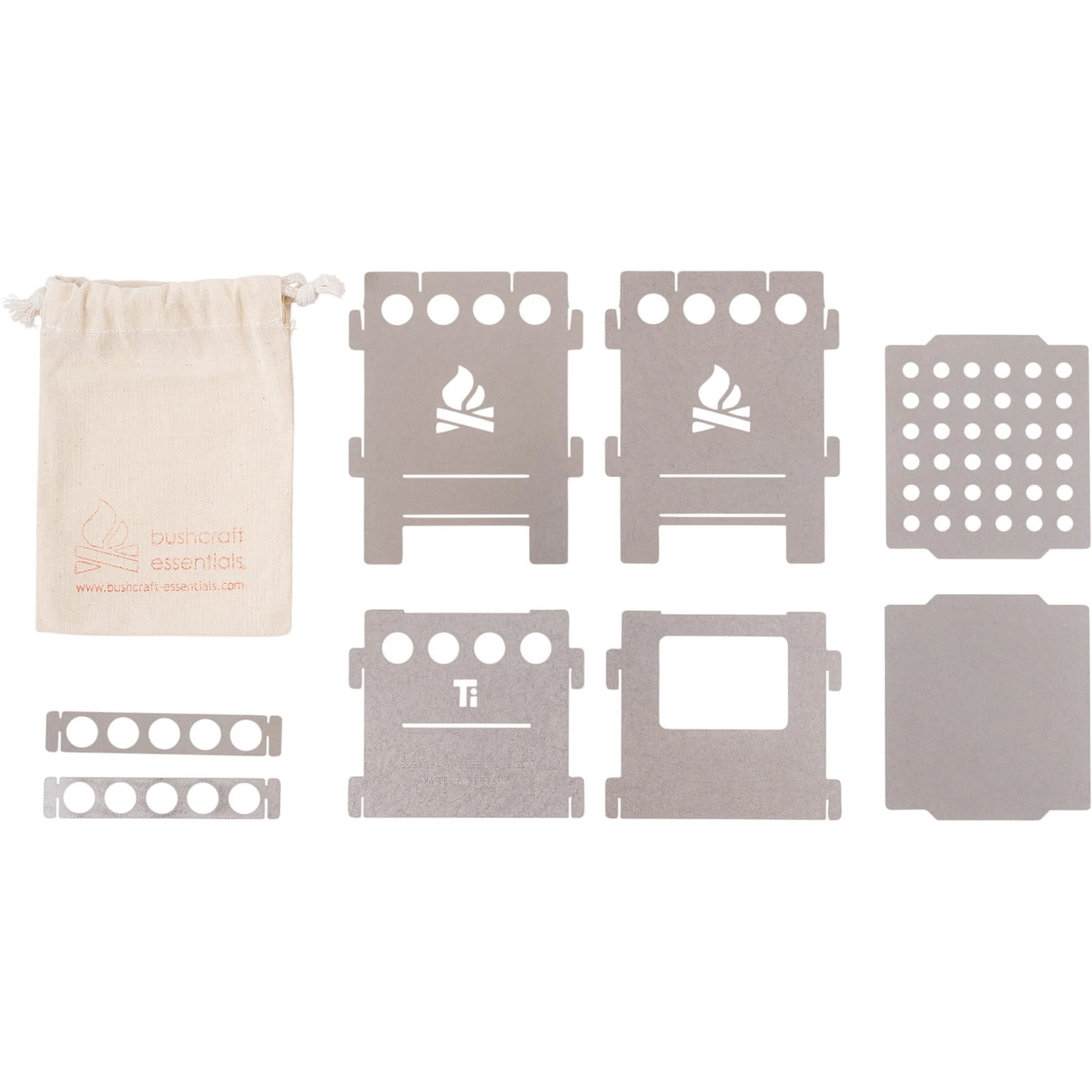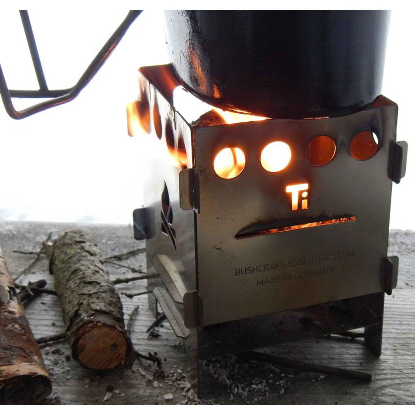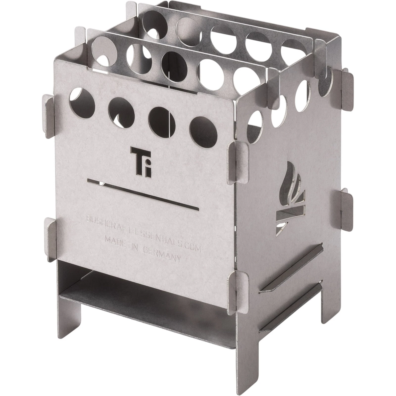 Die Bushbox Titanium von bushcraft essentials ist die ultraleichte Titanversion von der kleinen, handlichen Steck-Hobo Bushbox. Der Titaniumkocher wiegt nur 151 g und passt mit 9 x 11,5 cm in jede Hosentasche. Die Bushbox Titanium hat eine integrierte Aschepfanne als Bodenschutz. Durch die mitgelieferten Topfauflagen ist sie für jede Tassengröße oder auch als Grill verwendbar. Alternativ auch einsetzbar mit Trangia, Brennpaste, Esbit etc. oder auch als Windschutz für Brenner. Der Kocher ist komplett in Deutschland hergestellt. Im Lieferumfang befindet sich eine Baumwolltasche für den Transport.