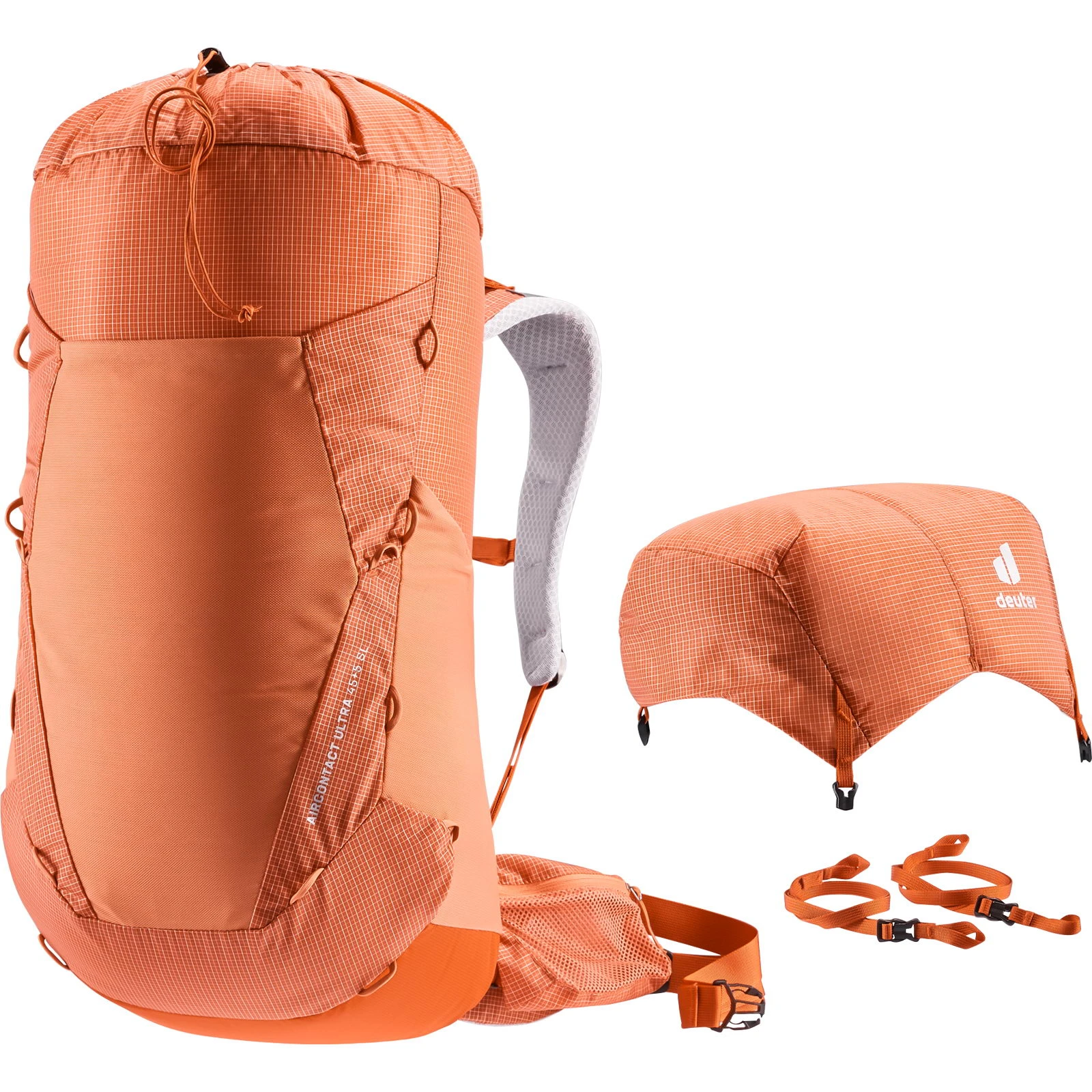 Der Aircontact Ultra 45+5 SL von deuter für Damen ist für alle Thru-Hiker, die sich selbst auf der Königsdisziplin des Wanderns herausfordern wollen und dafür eine leichte und zuverlässige Ausrüstung benötigen, ohne auf Komfort zu verzichten. Das neue Abstandsgewirke (Air Spacer Mesh) vereint drei Funktionen: Komfort, Dämpfung und Belüftung. Dies macht den Rucksack zu einem nachhaltigen und gewichtsoptimierten Leichtgewicht, das zusätzlich dank der verstellbaren Rückenlänge durch eine Hooks & Loops Lösung für passgenauen, angenehmen Tragekomfort sorgt. Reduziert auf das Wesentliche bringt das Leichtgewicht eine sehr gute Gewicht-Komfort-Ratio auf die Waage und ist dank des robusten Ripstop-Materials aus Hochleistungsfaser extrem strapazierfähig und wiederstandsfähig. Durch das Entfernen des Deckels lässt sich zudem das Gewicht weiter reduzieren. Je nach Einsatz und Ausrüstung kann der Rucksack dank der abnehmbaren Kompressionsriemen so modifiziert werden, dass unterschiedlichste Anbringungen von Gegenständen möglich sind.