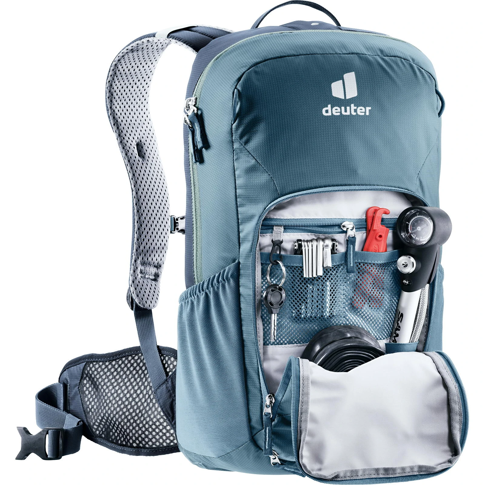 In der Neuauflage hat der Bike I 20 ein cleanes und sportliches Aussehen bekommen. Auch in Sachen Funktionalität glänzt der Bike I 20. Er ist mit dem Air Stripes Rückensystem ausgerüstet, sodass die Last optimal verteilt und die Wirbelsäule in sportlicher Fahrhaltung geschont wird. Optimale Belüftung und ein fester Sitz sind selbstredend. Zusätzlich ist der deuter Bike I 20 mit einer großen und gut zugänglichen Werkzeugtasche ausgestattet. Zwei dehnbare Außentaschen, eine Helmhalterung in der Hauptfarbe und eine Multitool-Tasche machen den Bikerucksack zu einem souveränen Begleiter auf Tagestouren, im Gelände oder auch in der Stadt.