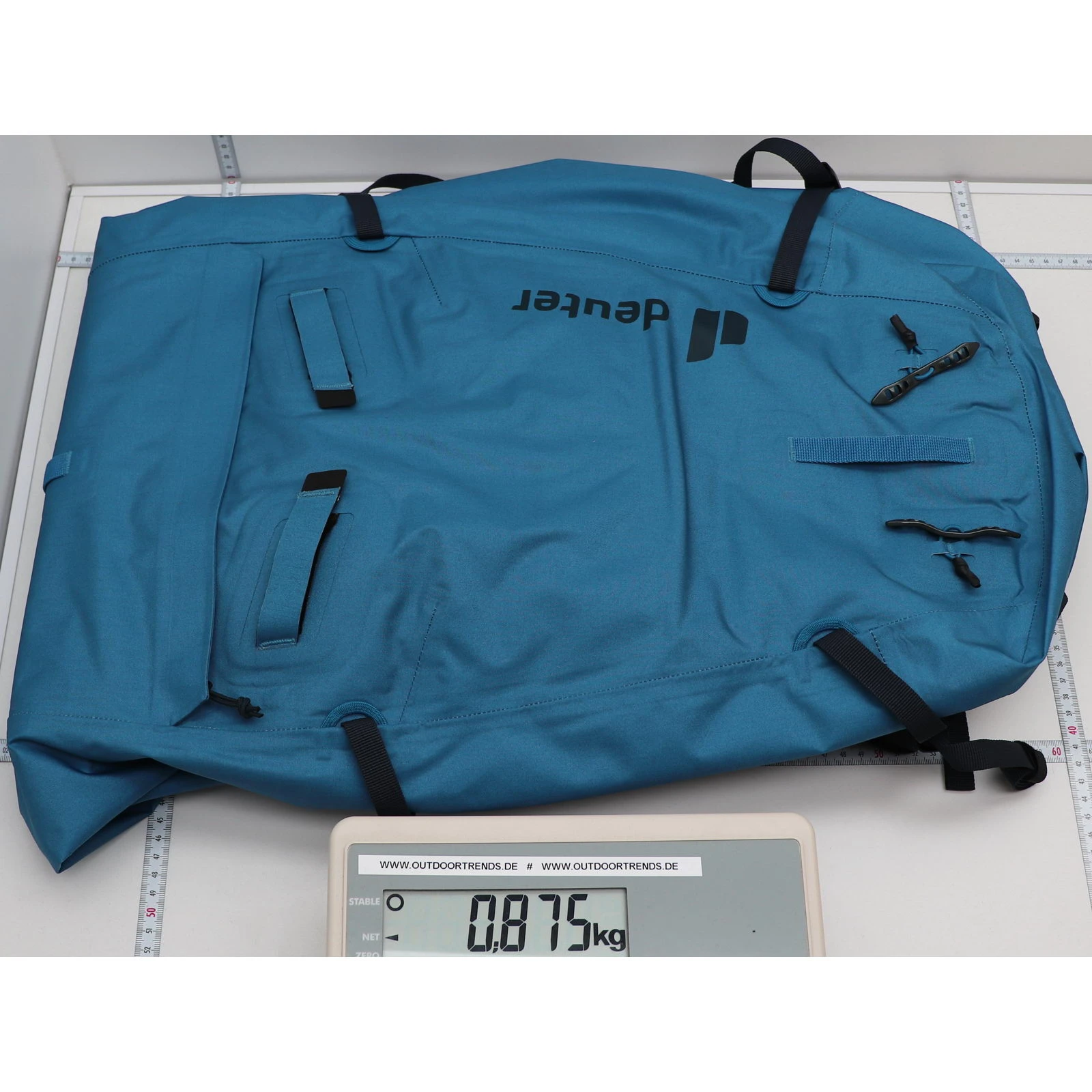 | Merkmale | Brustgurt mit Signalpfeife, Eisgerätehalterung, Frontfach mit Reißverschluss, Lastkontrollriemen, Materialschlaufen auf den Schulterträgern für Brille etc., Pickelhalterung, Rollverschluss (Wickelverschluss), Schlaufen für Helmhalterung (Halterung optional), Schlüsselclip, Seilfixierung oben, seitliche Kompressionsriemen, SOS Notfallhinweise, Stockhalterung, stufenlos verstellbarer Brustgurt, Trageschlaufe hinten oben, verstaubarer Hüftgurt, Volumenerweiterung durch Roll-Top um 10 Liter |