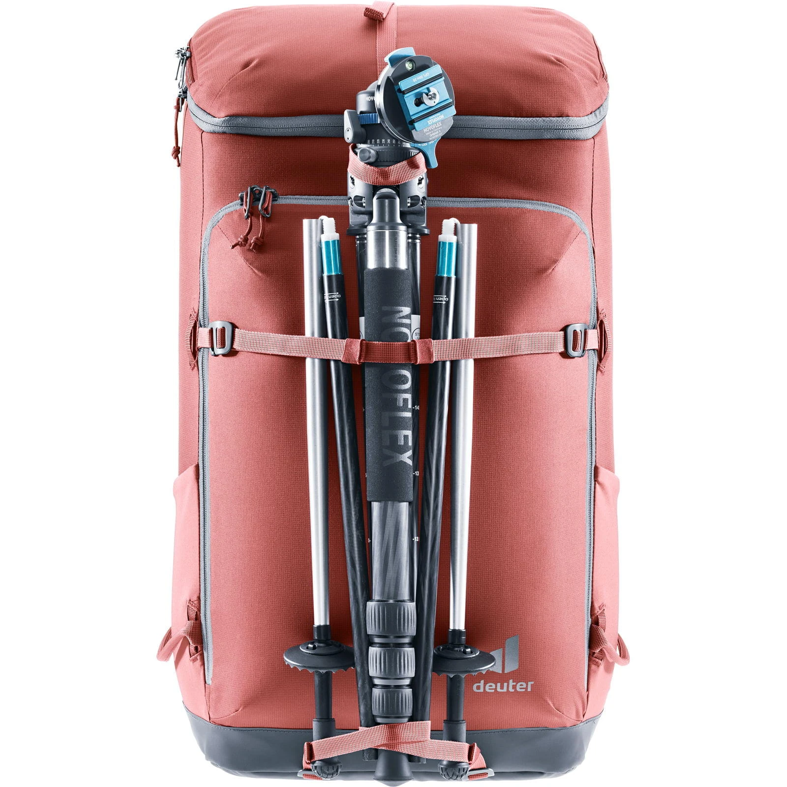Der Jaypack 34+ von deuter ist ein durchdachter, geräumiger Fotorucksack und perfekt für alle professionellen Fotografen, die in jeder Situation den entscheidenden Moment einfangen möchten. Ob unterwegs in der Stadt oder mitten in der Natur, das Alpine Tragesystem kombiniert einen festen und sicheren Sitz mit höchstem Tragekomfort und angenehmer Belüftung. Die ergonomisch geformten Polster des Tragesystems schmiegen sich an dem Rücken an und verteilen das Gewicht der Fotoausrüstung gleichmäßig und körpernah. Verstellbare Schulterträger, Brustgurt und Lastkontrollriemen sowie eine ausreichende Rückenlänge ermöglichen zudem eine optimale Übertragung der hohen Last auf die gepolsterten Hüftflossen und sorgen so für einen rückenschonenden Tragekomfort. Das vollständig modulare Hauptfach ermöglicht eine äußerst flexible Aufteilung und Organisation mit unterschiedlichen gepolsterten Klett-Trennwänden, je nach individuellen Anforderungen der Tour und der Größe des Equipments. Das abschließbare Rückenpanel mit umlaufendem Reißverschluss ermöglicht einen schnellen Zugriff auf die Fotoausrüstung und bietet mit drei Reißverschlusstaschen Stauraum für kleinere Ausrüstung. Das abschließbare Reißverschluss-Frontfach mit gepolstertem Laptopfach, diversen Einschub- und Reißverschlussfächern, Schlüsselclip und Stiftehalter bietet weiteren Stauraum. Zwei elastische Seitentaschen bieten Platz für Trinkflaschen oder ein kleines Stativ. Dank der Volumenerweiterung mittels Reißverschlussbag lässt sich das Deckelfach um 4 Liter Packvolumen erweitern und bietet zusätzlichen Platz für persönliche Gegenstände und Ersatzkleidung. Vier abnehmbare Gurtbänder und ein Schlingen-Gurtband mit Aluminiumhaken bieten darüber hinaus vielfältige Möglichkeiten, weitere Ausrüstung wie Matten, Jacken oder ein großes Stativ individuell zu befestigen. Auch das aufgeräumte, reduzierte Äußere sowie der sichere Stand durch das TPU Bodenpanel erleichtern das Handling und machen den Rucksack zu einem versierten Begleiter.