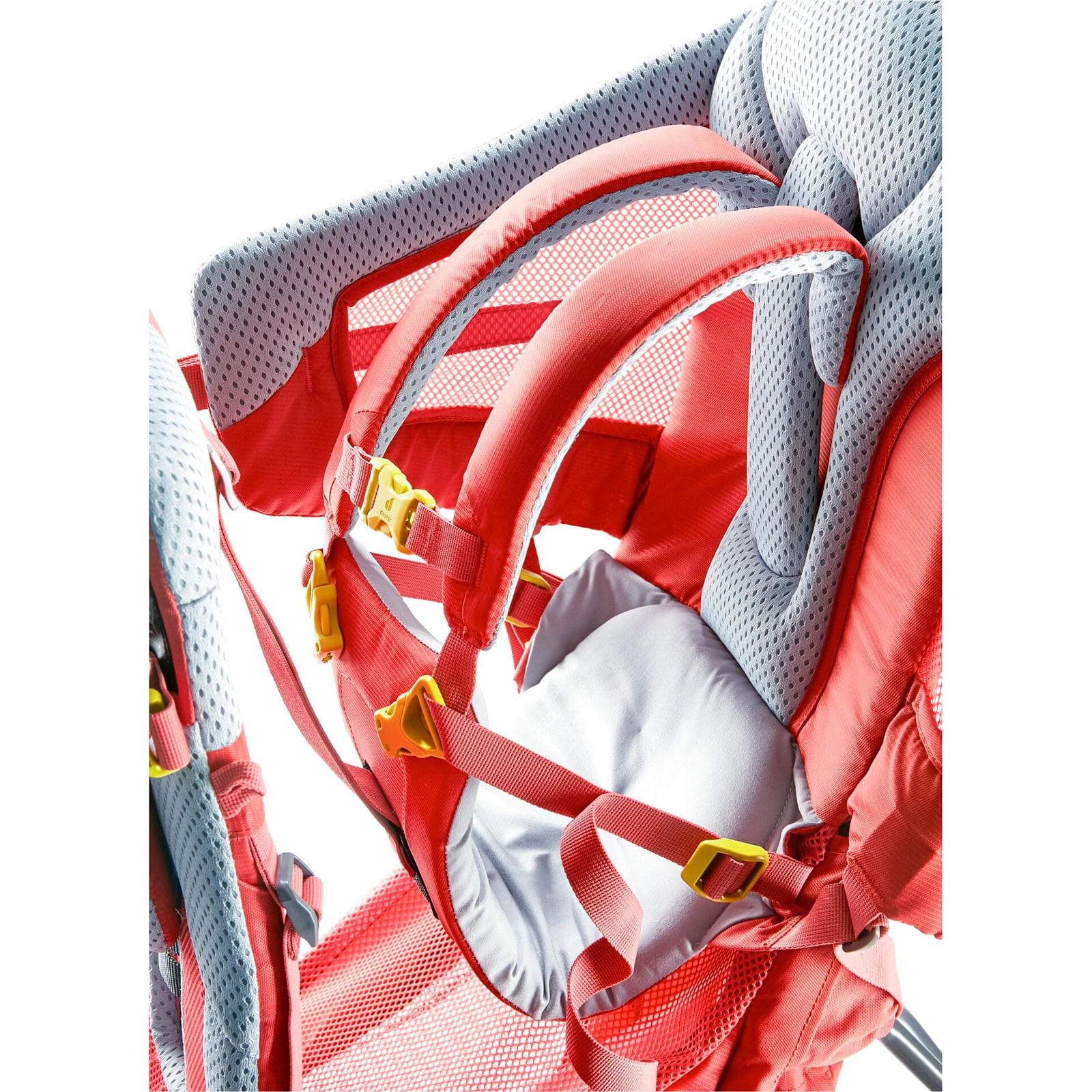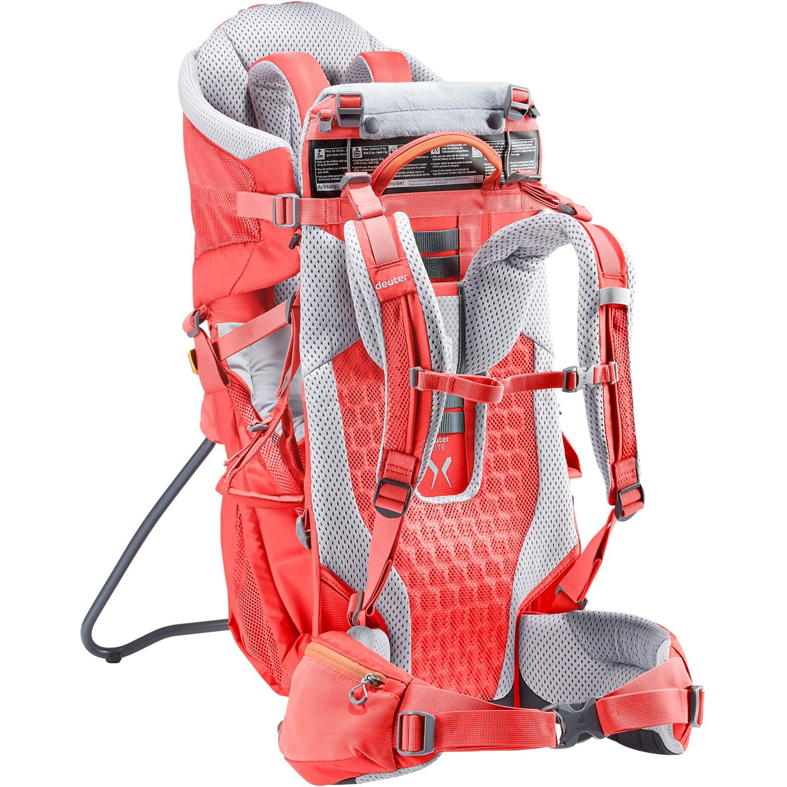| Merkmale | abnehmbares Kinnpolster, elastische Reißverschlusstasche auf einem Hüftflügel, elastisches Einschubfach vorne oben, gepolsterter Hüftgurt, großes Staufach unter dem Sitz mit Kordelzug und Mesheinsätzen, höhenverstellbare Fußschlaufen, beugt dem Einschlafen und Ermüden der Kinderfüße vor, höhenverstellbarer Brustgurt, höhenverstellbarer Kindersitz, Lastkontrollriemen, robuster Aluminiumrahmen mit breiter Standfläche, kippstabil, Schlüsselhalterung, seitliche Netzeinsätze für ausreichende Belüftung zum Kind hin, Standfuß mit Einrastfunktion für sicheren Stand, Tragegriff oben, verstellbare Rückenlänge, zusammeklappbar |