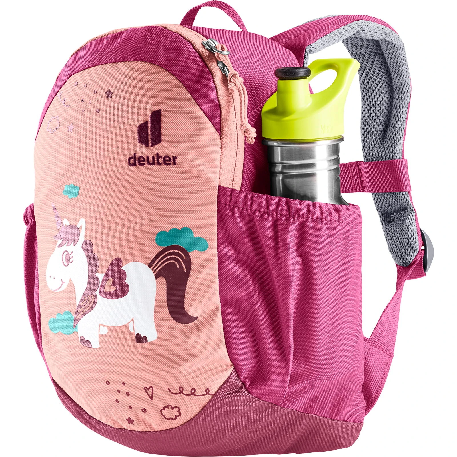 Der Pico von deuter ist ein Kinderrucksack für kleine Entdecker ab 2 Jahre, die ihre Lieblingssachen von Zuhause sicher mit in die Kindergrippe, zum Baden oder in den Bergen transportieren wollen. Neben bunten Farben und Mustern hat der Pico einen angenehmen Tragekomfort, durch den bequem gepolsterten Rücken und die S-förmigen, kindgerechten Schulterträger mit Soft-Edge-Abschlüssen, zu bieten. Ein stufenlos verstellbarer Brustgurt sorgt für die Fixierung des Kinder-Rucksacks auf den Schultern. Der Pico hat ein großes Hauptfach mit 5 Liter Fassungsvermögen und Namensetikett innen, sowie zwei elastische Seitentaschen für eine Trinkflasche. So ist genügend Platz für alle wichtigen Dinge, die auf den alltäglichen Abenteuern nicht fehlen dürfen.