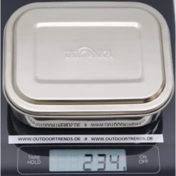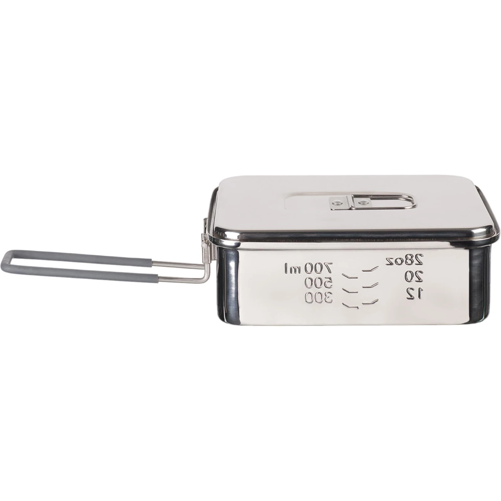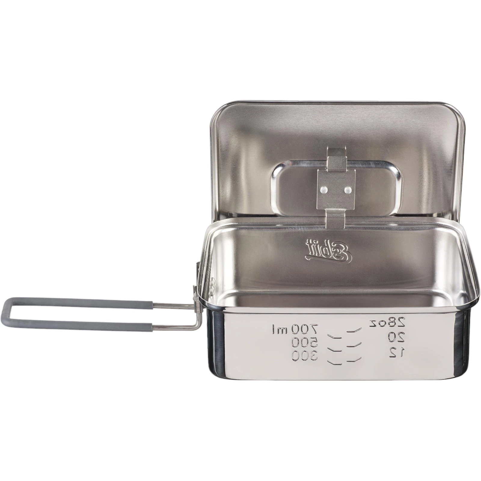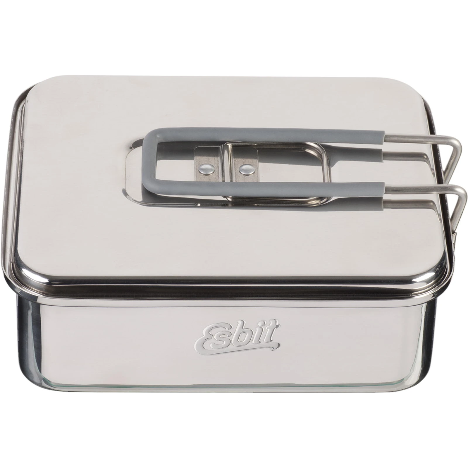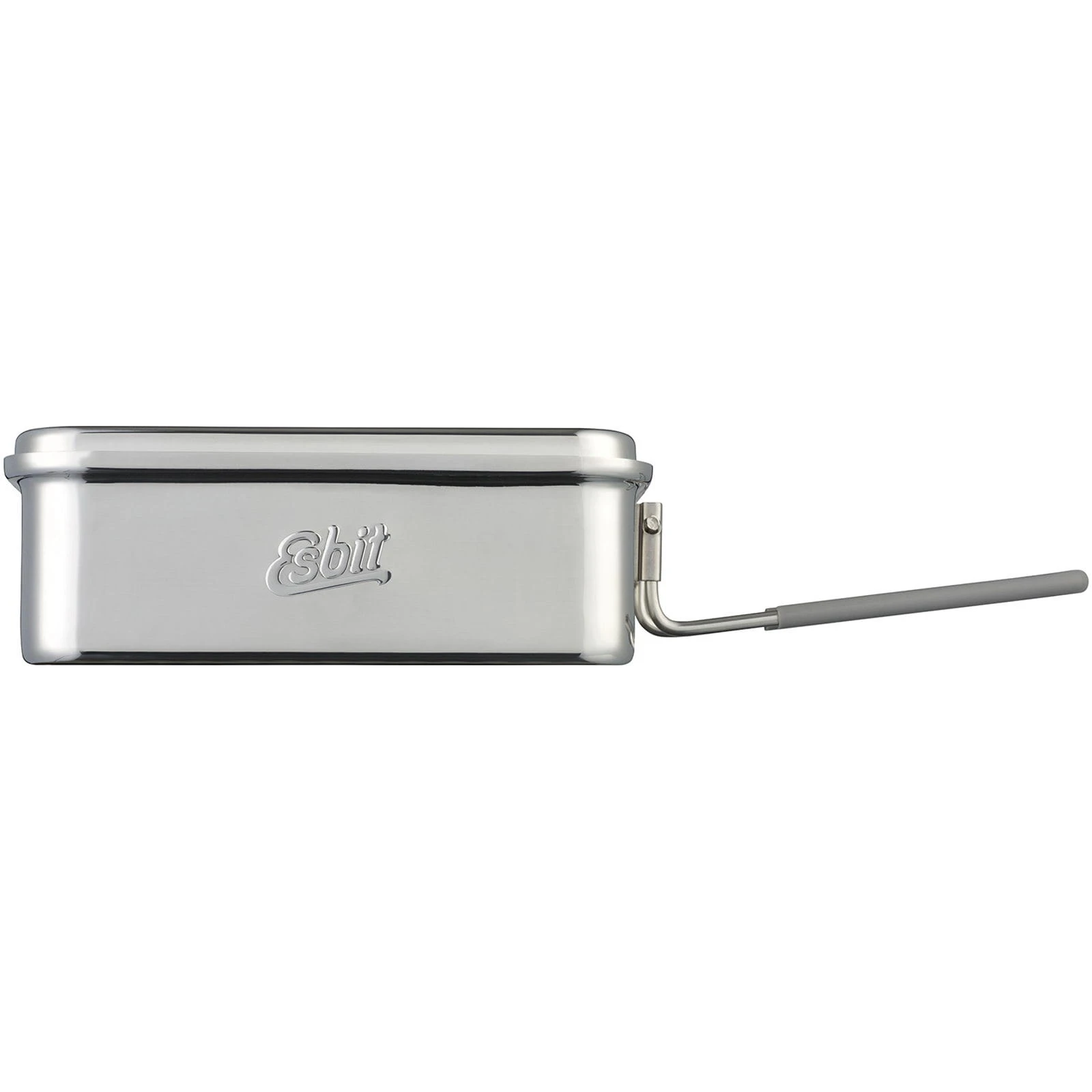Der Edelstahl Topf PT1200ST von Esbit ist aus hochwertigem 18/8 Edelstahl, fasst ca. 1.200 ml und ist ideal für 1-2 Personen. Der handliche Griff aus Edelstahl mit Silikonummantelung sorgt für Sicherheit und Komfort beim Kochen und lässt sich praktisch und platzsparend hochklappen. Der Deckel lässt sich praktischerweise beim Kochen direkt am Rand des Topfes aufhängen. Das Volumen wird im Inneren des Topfes in ml und oz angegeben. Der flache, rechteckige Topf ist ideal zum Verstauen im Gepäck und kann auch als Pfannenersatz verwendet werden. Der Edelstahl-Topf bietet im Inneren zusätzlichen Platz zur Aufbewahrung z.B. von Besteck oder eingepackten Mahlzeiten. Zum Lieferumfang gehört außerdem ein praktischer Netzbeutel.