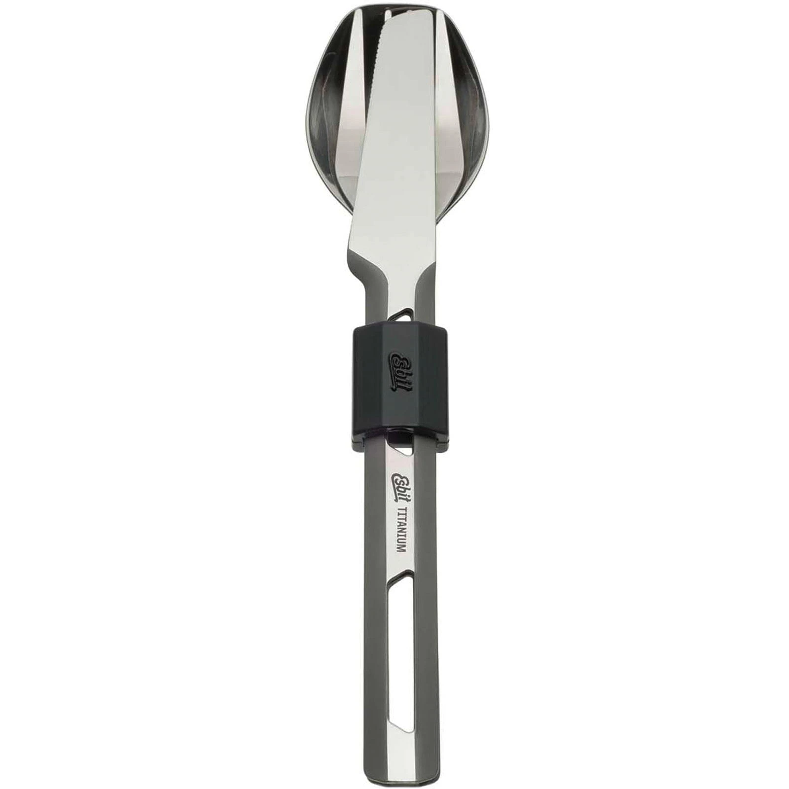 Dieses universell einsetzbare, robuste Besteck-Set aus Titan von ESBIT spart an der richtigen Stelle: Beim Gewicht. Es ist extrem leicht und durch sein außergewöhnliches Design auch ein optischer Blickfang. Ess- bzw. Schneideflächen sind aufwändig poliert, eine hitzebeständige, griffige Silikon-Manschette hält das Besteck-Set praktischerweise bei Nichtbenutzung zusammen.
