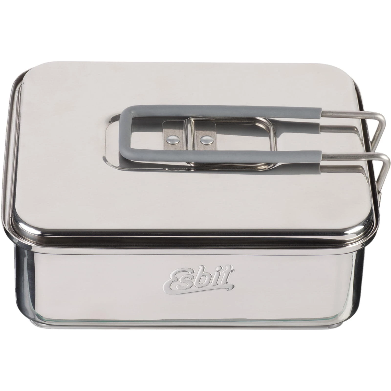 Das leichte und kompakte Trockenbrennstoff-Kochset CS1100ST von Esbit mit einem Topf aus hochwertigem Edelstahl ist der ideale Begleiter für einen Kurztrip allein oder zu zweit. Perfekt zum Kochen, für warme Mahlzeiten oder heiße Getränke auf Tour. Das Kochset wird mit zwei 14 g oder einer 27 g Esbit Trockenbrennstoff-Tablette (nicht im Lieferumfang) angefeuert. Der Topf fasst ca. 1.100 ml und verfügt über eine Volumenanzeige in Oz und Liter, eine praktische Deckelaufhängung und einen klappbaren Edelstahlgriff. Der Innenraum bietet Platz für weitere Kochutensilien, wie z.B. Besteck oder verpackte Mahlzeiten. Der flache, rechteckige Topf ist ideal zum Verstauen im Gepäck und kann aufgrund seiner Form auch als Pfannenersatz verwendet werden. Neben dem Deckel sowie einem Stand, der sich platzsparend im Topf verstauen lässt, gehört auch ein praktischer Netzbeutel zum Lieferumfang, in dem das komplette Kochset kompakt verpackt werden kann.