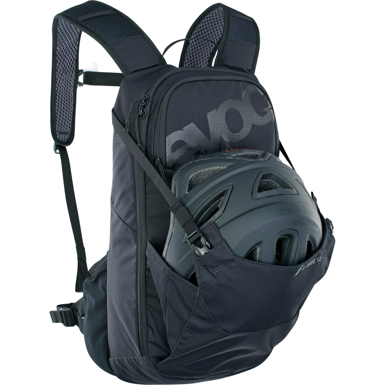 Der E-Ride 12 von Evoc ist ein extraleichter und kompakter E-Bike-Rucksack, dank seinem speziellen Tragesystem ist der Fahrradrucksack kaum spürbar. Er bietet Platz für alles, was bei einem Tages-Ride nicht fehlen darf.