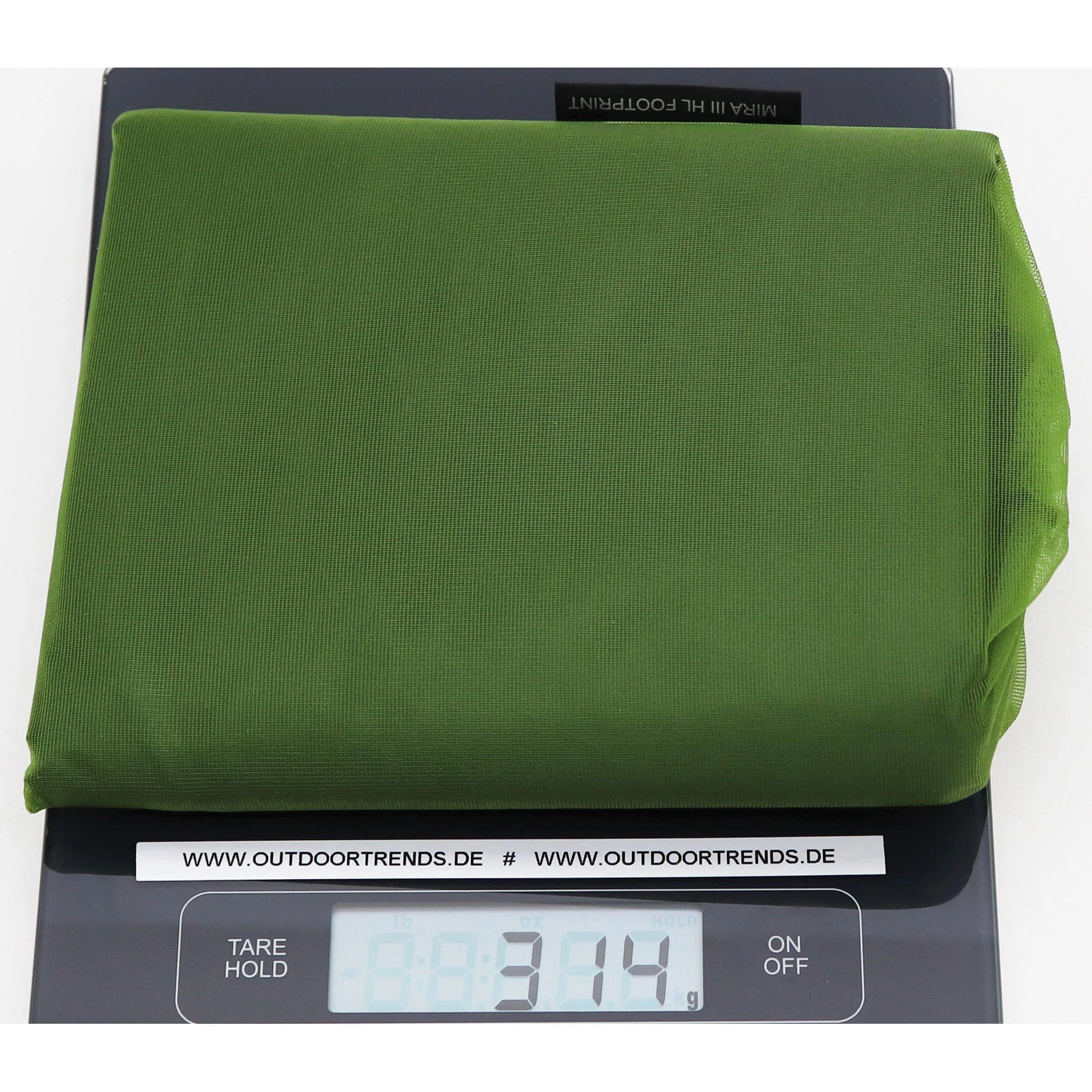 Der Footprint für das Mira III HL von EXPED schützt den Zeltboden vor Abrieb, Schmutz, Durchnässung. Er hat dieselbe Form wie der Zeltgrundriss, ist aber etwas kleiner geschnitten, damit kein Regen zwischen Zeltterboden und Footprint gelangen kann. Diese praktische Unterlage wird mit elastischen Bändern ganz einfach direkt am Zelt und den Heringen befestigt. In der Apsis schützt der Footprint wie ein Teppich und sorgt so für weniger Schmutz im Zelt. Zusätzlich wird auch die Bildung von Kondensfeuchtigkeit reduziert. Es ist möglich Footprint und Außenzelt als Minimum für Leichtgewichtstouren zu kombinieren. Ein Footprint kann auch als Tarp gegen Regen, Wind und Sonne aufgespannt werden.