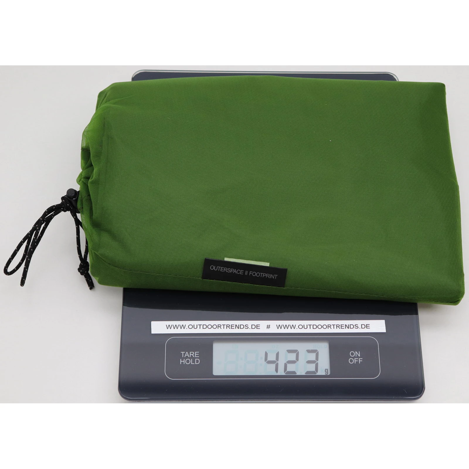 Der Outer Space II Footprint von EXPED schützt den Zeltboden vor Abrieb, Schmutz und Durchnässung. Er hat dieselbe Form wie der Zeltgrundriss, ist aber etwas kleiner geschnitten, damit der Regen nicht zwischen Footprint und Zeltunterboden laufen kann. In der Apsis schützt der Footprint wie ein Teppich vor Dreck und Nässe im Zelt. Es ist möglich Footprint und Außenzelt als Minimum für Leichtgewichtstouren zu kombinieren. Ein Footprint kann auch als Tarp gegen Regen, Wind und Sonne aufgespannt werden.