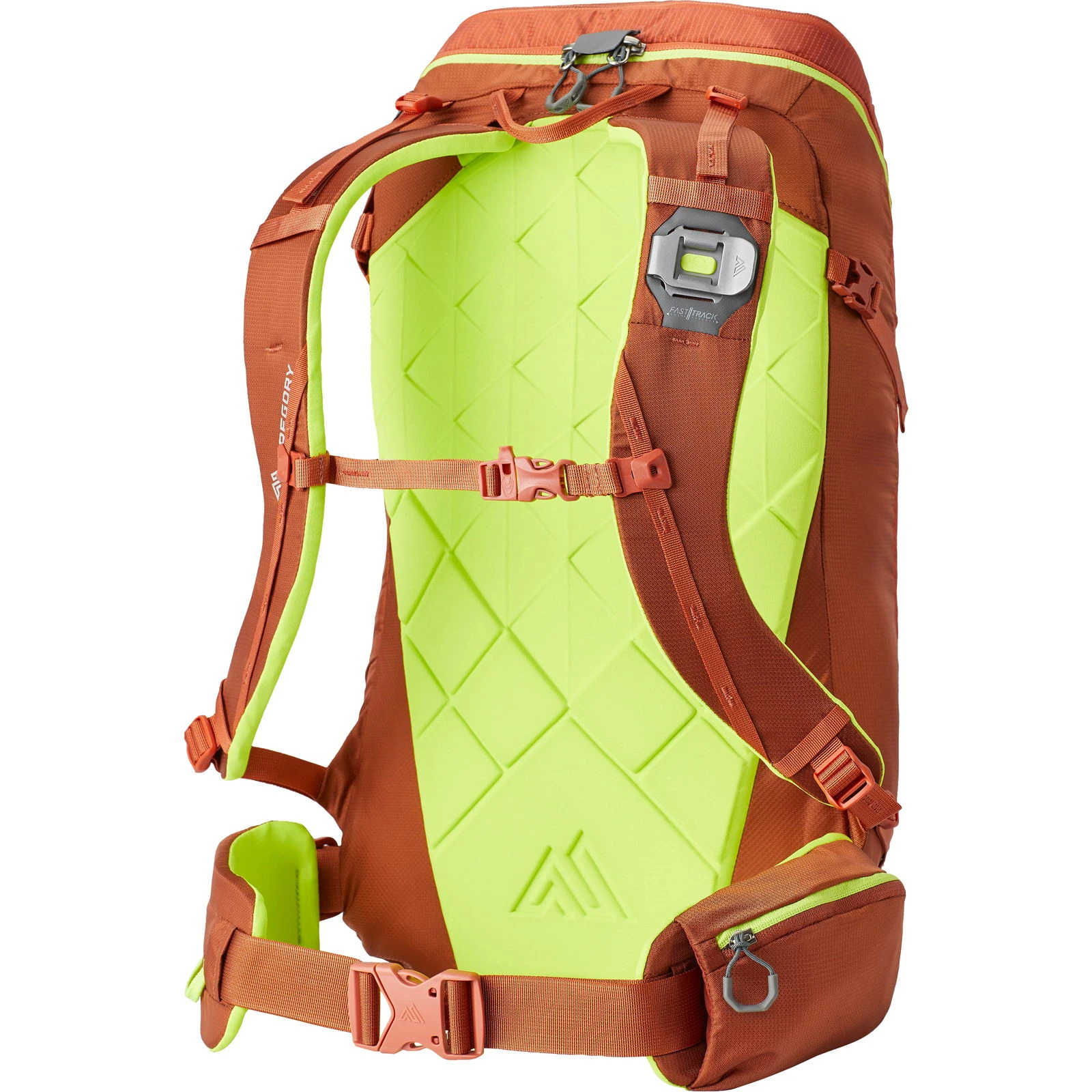 Der Targhee FT 24 von Gregory bietet den nötigen Stauraum für Tagestouren im alpinen Gelände, bei denen man schnell unterwegs sein möchte. Die leichten, aber robusten Materialien und abnehmbare Komponenten machen den Targhee FT 24 zu einem Fliegengewicht. Das revolutionäre FasTrack-System erlaubt zusätzlich, die Ski an den Rucksack zu befestigen, ohne diese absetzen zu müssen. Der Tourenrucksack ist ausgestattet mit verstärkten Gurtschlaufen und einem elastischem Gurtband zur Skibefestigung mit FastTrack-Haken und einem Helmtragesystem mit verstellbarer Hakenbefestigung. Der Hüftgurt ist abnehmbar, ein Hüftpolster besitzt eine Materialschlaufe, das andere eine praktische Reißverschlusstasche. Ein großes Einschubfach vor dem Hauptfach nimmt das Notfallequipment auf, Hauptfach und Einschubach werden über einen Reißverschluss mit einem Deckel verschlossen. Zusätzlich hat der Targhee FastTrack 24 von Gregory diverse Befestigungsmöglichkeiten unter anderem für Pickel, Eisgeräte oder Stöcke.
