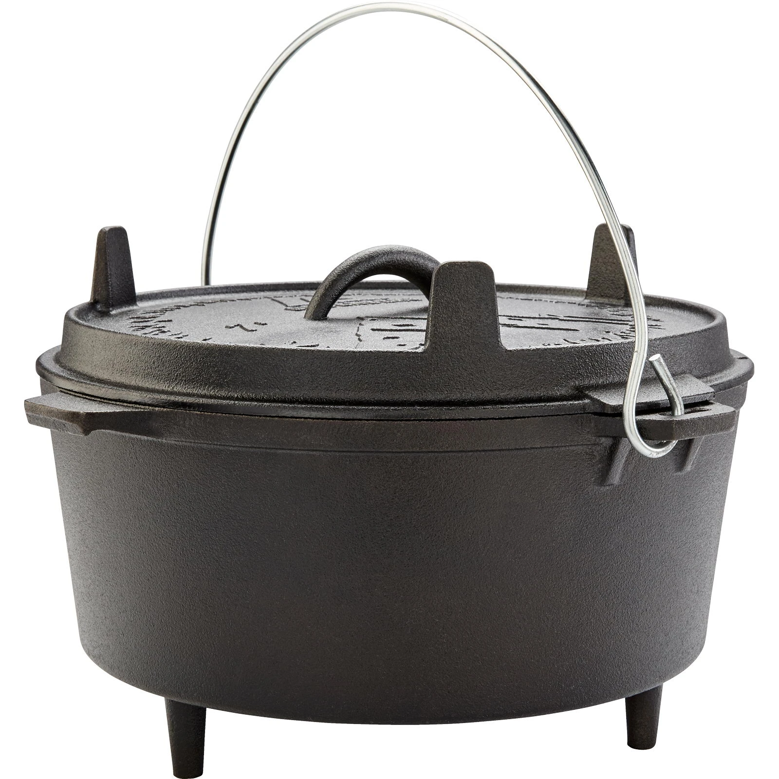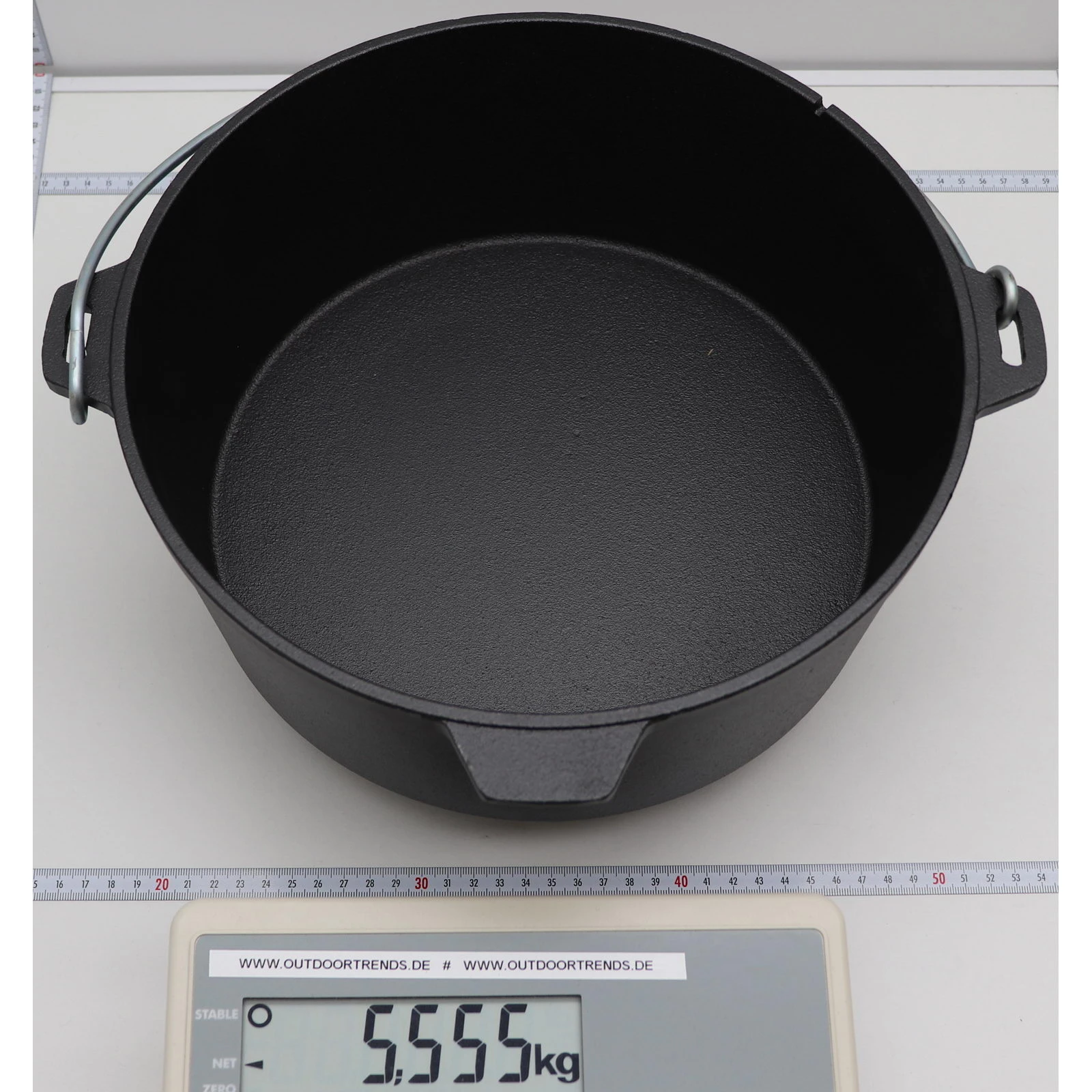 Der ASKJA POT 7L von Groenberg ist ein gusseiserner Topf mit hoher Wärmeleitfähigkeit und konstanter Rundumwärme. So werden Eintöpfe, Suppen, Gemüse, Fleisch oder Brot schonend zum Genuss. Der Deckel ist leicht konkav gewölbt damit das Kondenswasser im Inneren zum Rand hin abfließen kann und beim Anheben des Deckels nichts ins Gericht tropft. Ein Dampfauslass am Deckel verhindert lästiges Klappern oder Überkochen. Besonders Praktisch: Der Deckel lässt sich auch als Pfanne oder Servierteller nutzen und steht, dank seiner Füße auf der Oberseite, leicht erhöht und absolut sicher. Geeignet für Grill, Gasherd, Backofen oder offenes Feuer. Der Topf ist noch nicht eingebrannt und muss vor der ersten Benutzung entsprechend vorgenommen werden.
