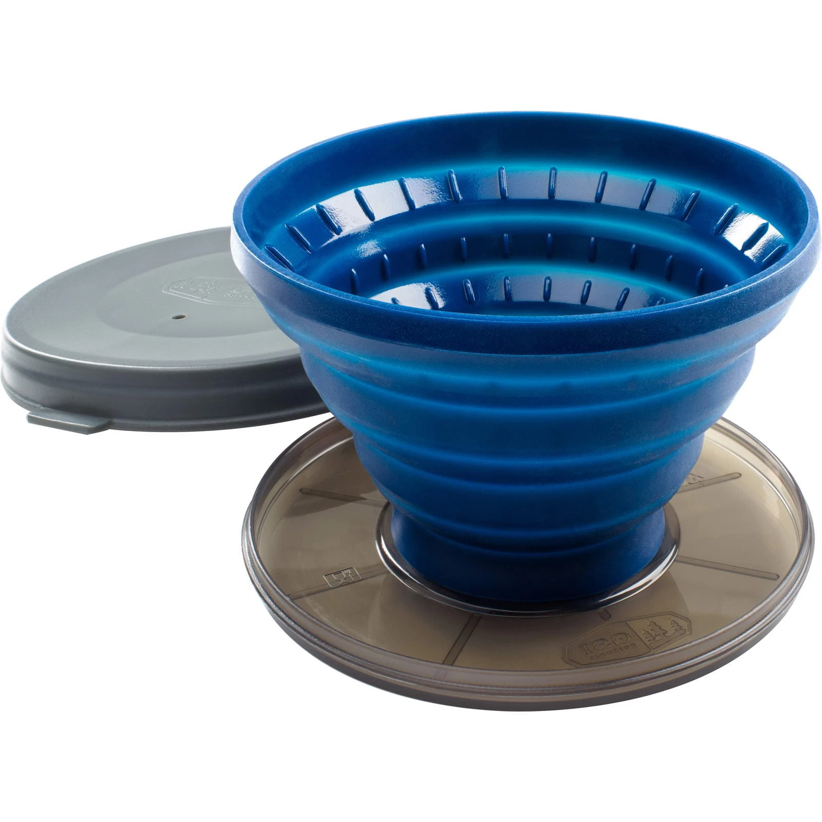 Leichter Kaffeefilter welcher wiederverwendbar ist und mittels großer Grundplatte sogar auf kleineren Töpfen sicher steht. Wird der Kaffeefilterhalter nicht benötigt, kann er flach zusammen gelegt werden und nimmt so kaum Platz weg beim Transport. Achtung: die Filterhalter besitzt unten ein Loch, durch das der fertige Kaffee laufen kann. Dieses ist aber zu groß um das Kaffeepulver zu filtern, so dass normale Filtertüten zum Einsatz kommen müssen.