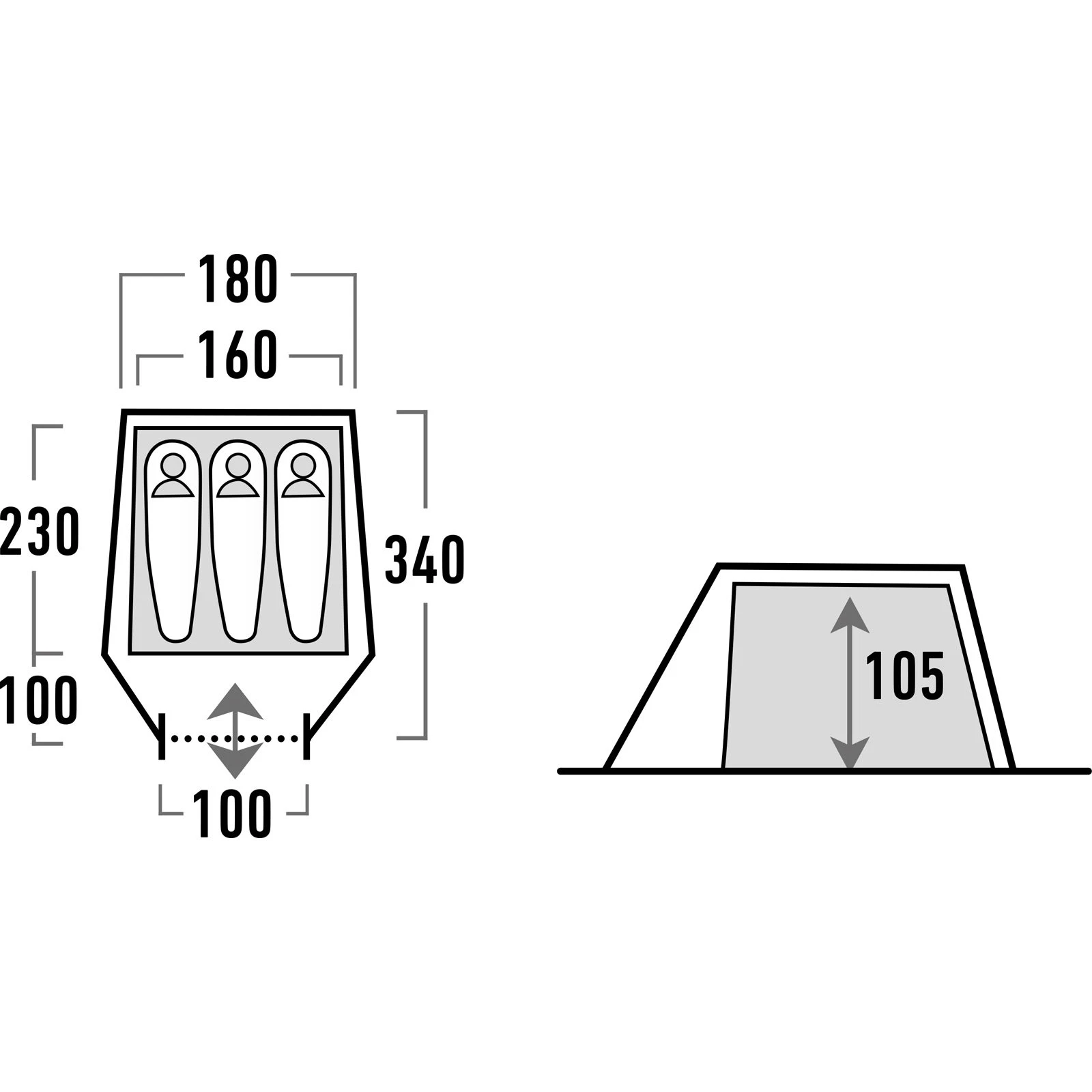 | Maße Außenzelt ca. | 340 x 180 x 115 cm |