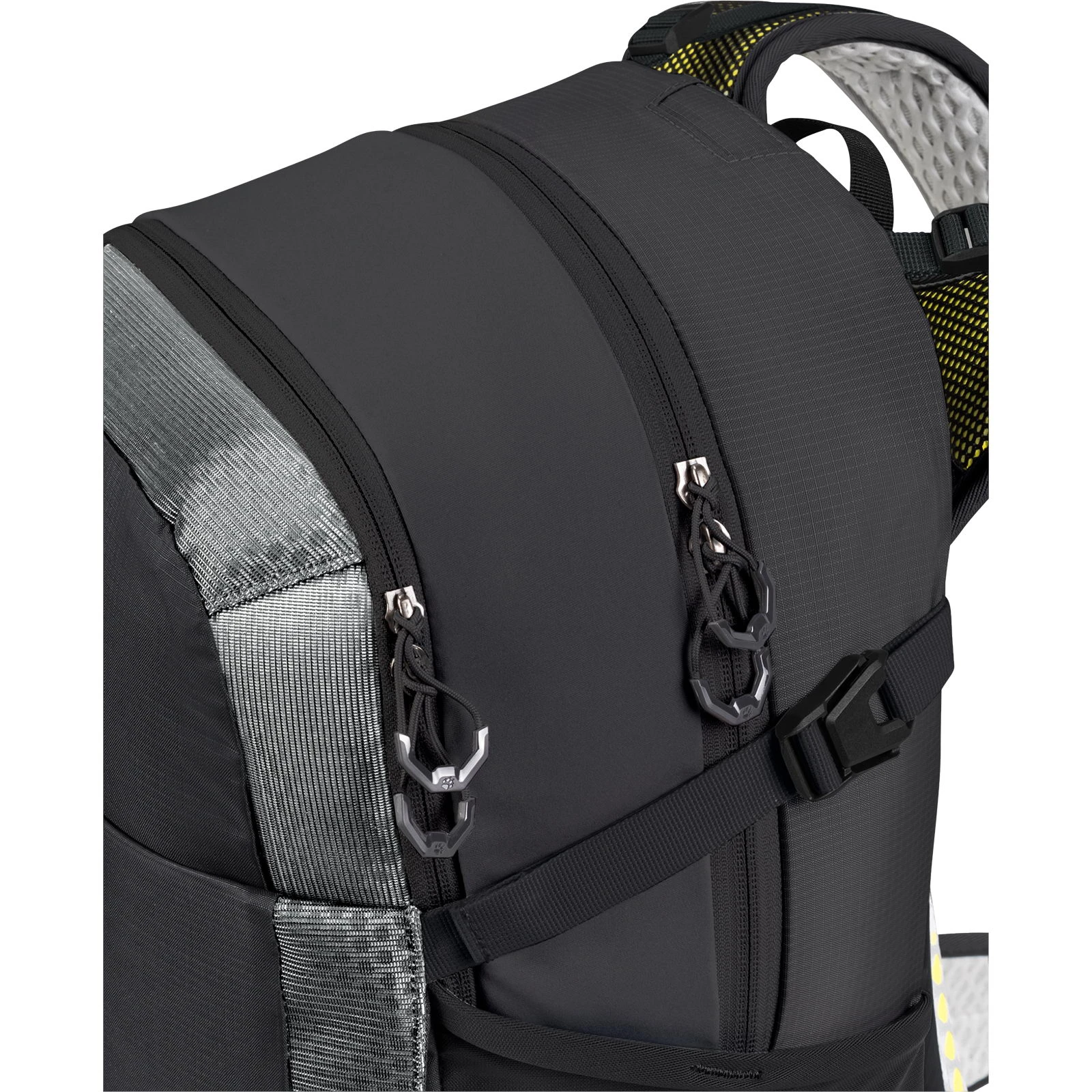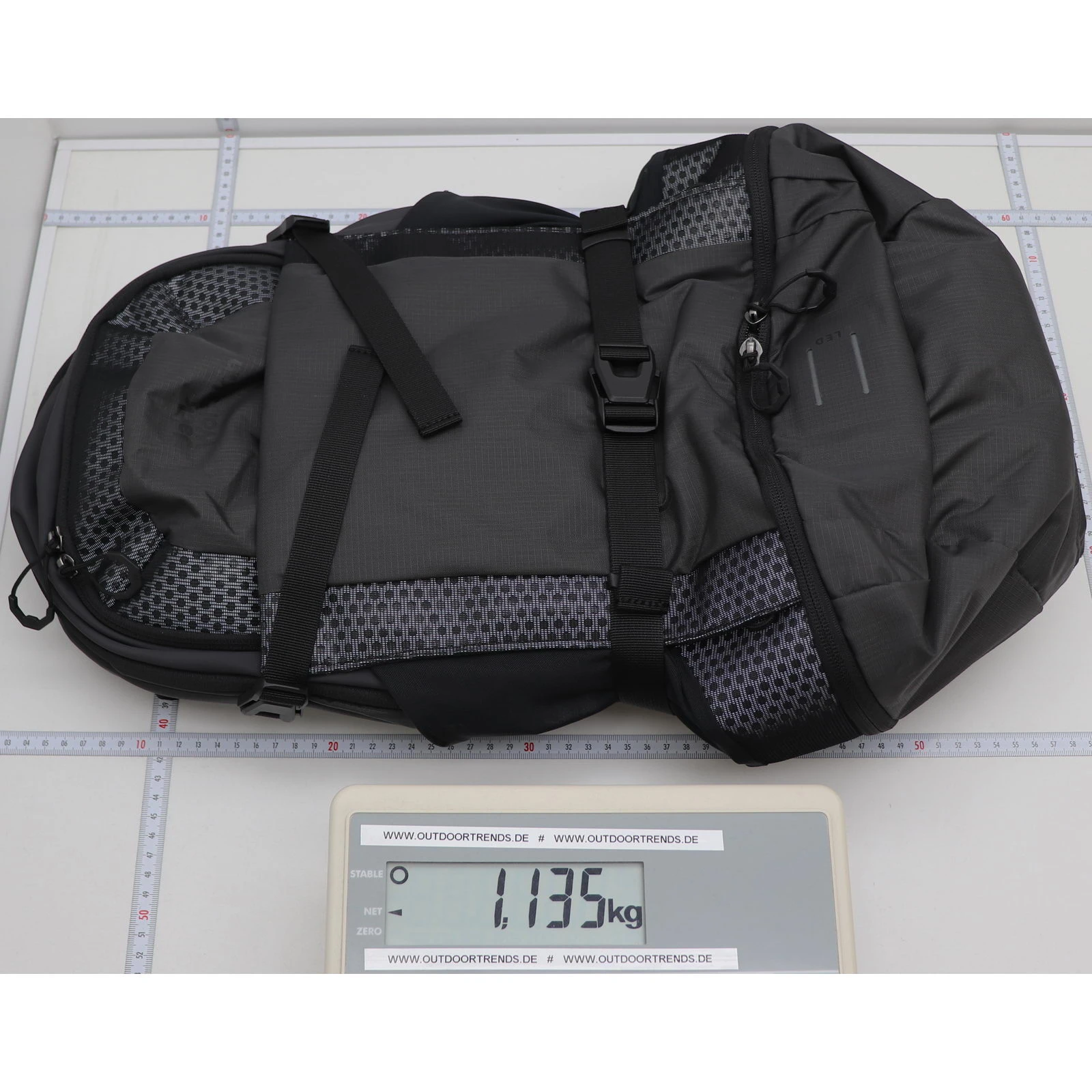 | Merkmale | Blinklichthalterung, Bodenfach mit separatem Zugang von außen, Brustgurt mit Signalpfeife, Einschubfach im Hauptfach, Einschubfach vorne in der Weite regulierbar, gepolsterter Hüftgurt, Halterung für Trinkblase, höhenverstellbarer Brustgurt, integrierte Regenhülle, Materialschlaufen auf den Schulterträgern für Brille etc., reflektierende Elemente, Schlauchdurchführung für Trinksystem, Schlüsselclip, seitliche Kompressionsriemen, Trageschlaufe hinten oben, verstaubare Helmhalterung, Werkzeugfach vorne mit Reißverschluss und durchdachter Fächeraufteilung, zwei elastische Seitentaschen, zwei Reißverschlusstaschen an den Hüftflügeln (aus Mesh), Zwischenboden zwischen Bodenfach und Hauptfach kann geöffnet werden |