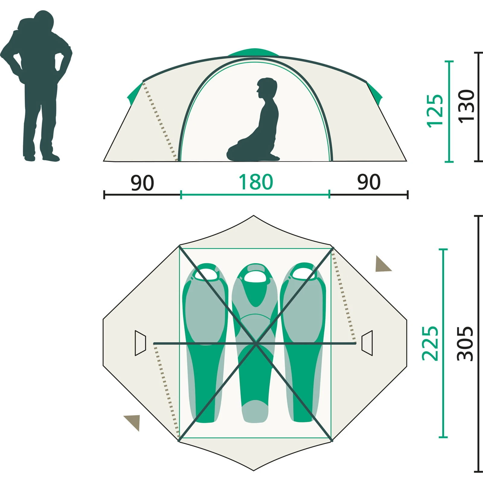 | Maße Außenzelt ca. | 360 x 305 x 130 cm |