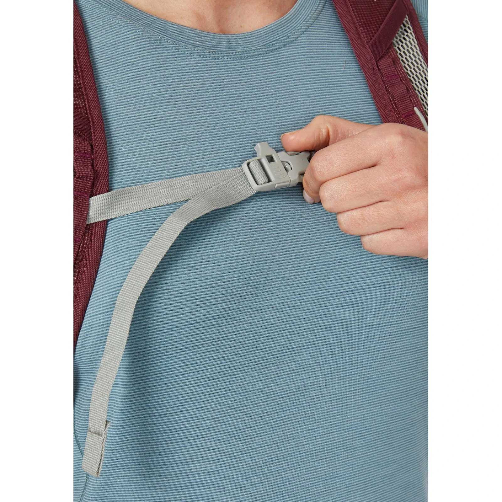 | Merkmale | Blinklichthalterung, Brustgurt mit Signalpfeife, Deckelfach mit Reißverschluss außen, Deckelfach mit Reißverschluss innen, Einschubfach innen, Halterung für Trinkblase, höhenverstellbarer Brustgurt, integrierte Regenhülle in separater Reißverschlusstasche am Boden, Lastkontrollriemen, Materialschlaufen auf den Schulterträgern für Brille etc., Schlauchdurchführung für Trinksystem, Schlüsselhalterung, seitliche Kompressionsriemen, Stockhalterung, Tragegriff hinten oben, zwei elastische Einschubfächer seitlich |