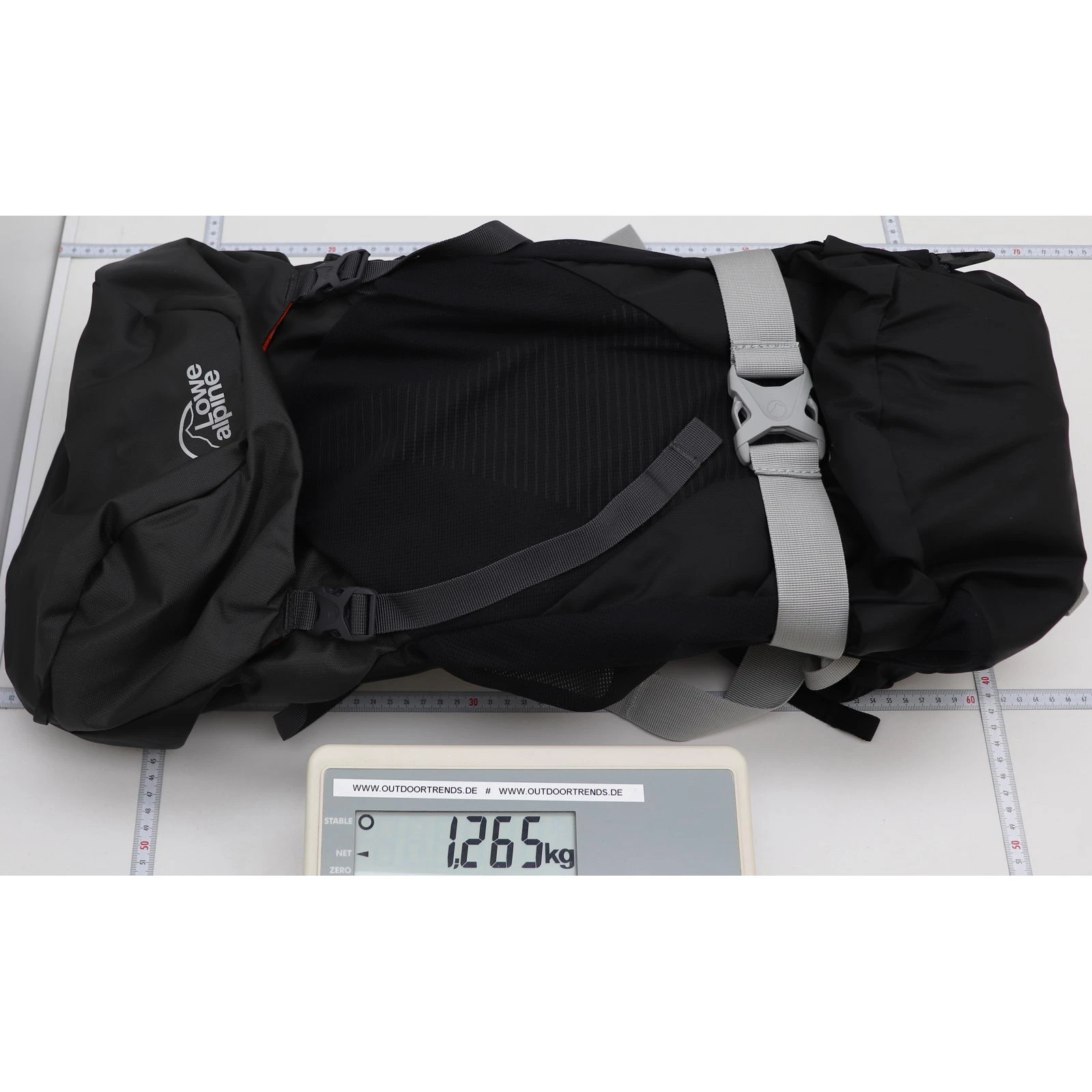 | Merkmale | Anleitung für alpine Notsignale, Brustgurt mit Signalpfeife, Deckelfach mit Reißverschluss außen, Deckelfach mit Reißverschluss innen, Einschubfach im Hauptfach, elastisches Einschubfach vorne, Halterung für Trinkblase, höhenverstellbarer Brustgurt, integrierte Regenhülle in separater Reißverschlusstasche am Boden, Lastkontrollriemen, Materialschlaufen auf dem Deckel, Materialschlaufen auf den Schulterträgern für Brille etc., reflektierende Elemente, Schlauchdurchführung für Trinksystem, Schlüsselhalterung, seitliche Kompressionsriemen, Stockhalterung, Tragegriff hinten oben, zwei elastische Einschubfächer seitlich, zwei Reißverschlussfächer auf den Hüftflügeln |