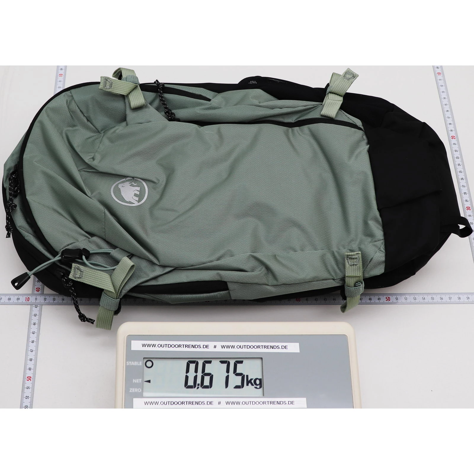 Der Lithium 20 Women von Mammut für Damen ist ein leichter und kompakter Wanderrucksack mit top Ausstattung, er ist optimal für Tagestouren. Der Lithium 20 Women ist mehrheitlich aus recycelten Materialien hergestellt und die dauerhaft wasserabweisende Imprägnierung ist PFC-frei. Dank der besonders leichten und atmungsaktiven Schulterpolsterungen besitzt der Tagesrucksack einen hohen Tragekomfort und die Luftkanäle im 3D EVA-Schaum sorgen am Rücken für eine gute Kühlung. Das Tragesystem und die Schulterträger sind speziell auf die weibliche Anatomie zugeschnitten. Der Lithium 20 Women besitzt eine umfangreiche Ausstattung wie z.B. eine Regenhülle, eine Stockhalterung oder einen gepolsterten und abnehmbaren Hüftgurt mit einer ausklappbaren Tasche für das Smartphone.