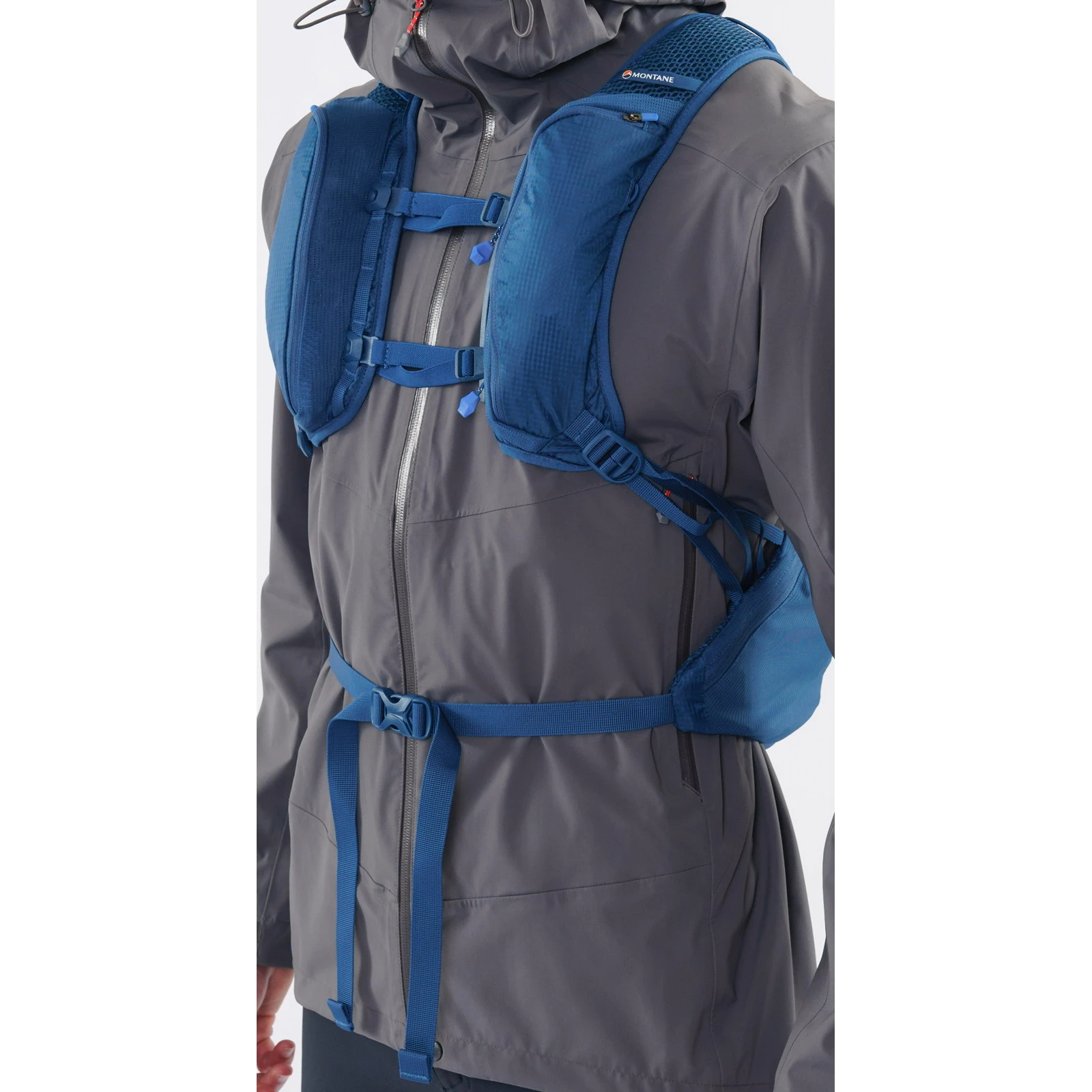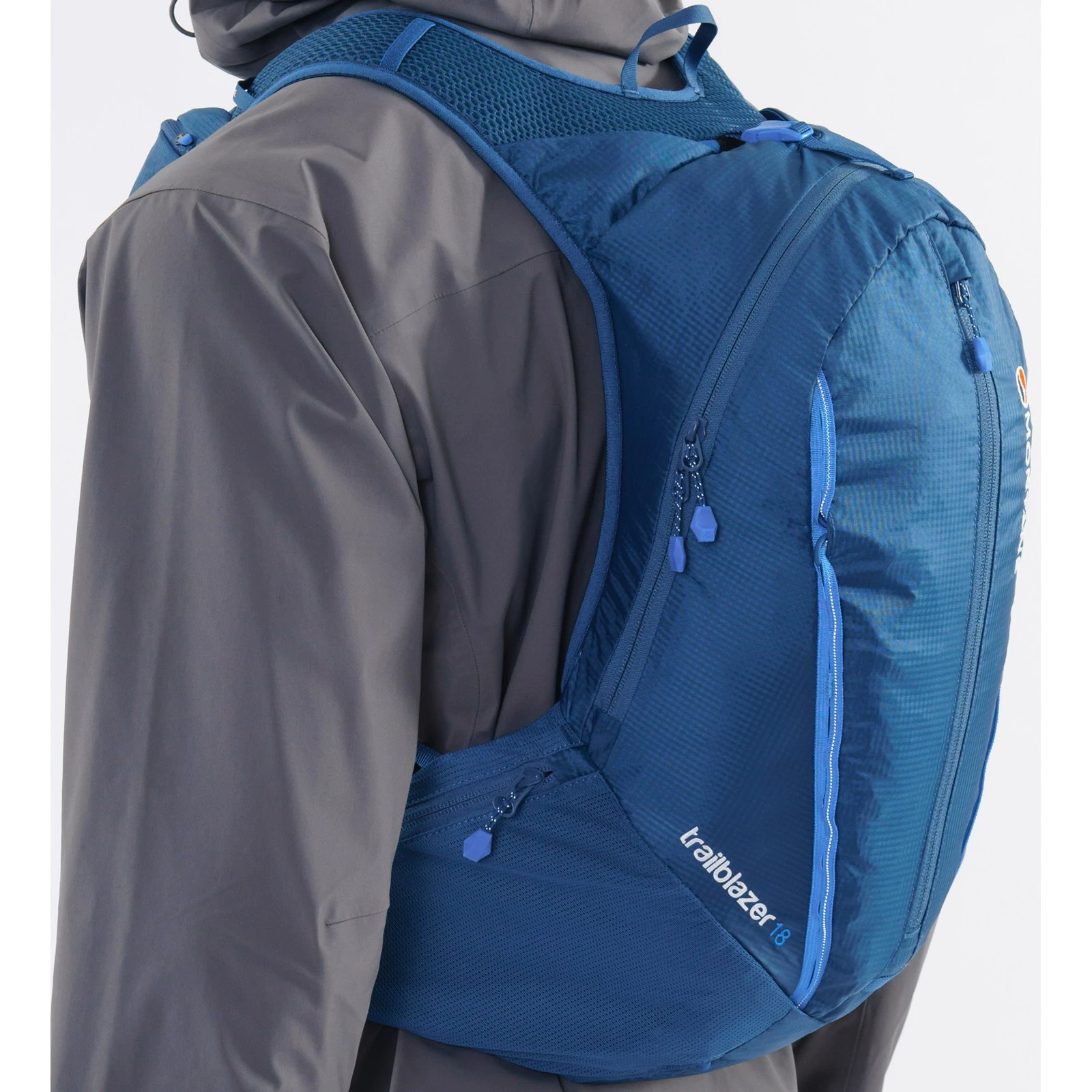Der Trailblazer 18 von Montane ist ein eng anliegender, leichter Tagesrucksack und wurde konzipiert für bewegungsintensive Tagestouren, auf denen ein geringes Gewicht, hohe Stabilität und einfacher Zugriff auf die Ausrüstung essentiell sind. Der innovative COVALENT Gurt bietet eine individuell anpassbare, eng am Körper anliegende Passform, ohne dabei die Bewegungsfreiheit einzuschränken. Eine Vielzahl an leicht erreichbaren Fächern bietet einfachen Zugang zu Wasserversorgung, Essen und Ausrüstung. Der Rucksack ist mit einem Daisy-Chain System auf der Vorderseite mit reflektierenden Elementen ausgestattet und besitzt verschiedene Möglichkeiten der Stockbefestigung.