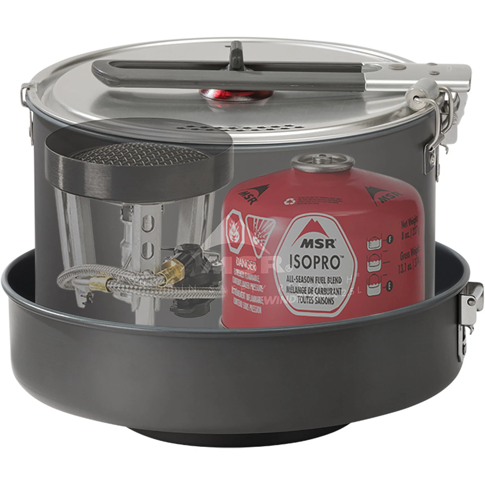 Das windsichere und druckregulierte Design des WindBurner Combo von MSR sorgt für schnelles Kochen auch bei Wetter, bei dem andere Kocher versagen. Das einzigartige Kochersystem lässt sich praktisch und schnell verwenden. Der innenliegender Strahlungsbrenner macht den WindBurner Combo Kocher praktisch windsicher. Der eingebaute Wärmeaustauscher, das windsichere Design und der integrierte Regler sorgen selbst bei Wind und Kälte für schnelles Kochen und ausgezeichnete Treibstoffeffizienz. Die gesamte Serie (als Zubehör erhöltlich) beinhaltet modulare, stapelbare Komponenten und komplette Kochsysteme, die für Solotouren ebenso wie für Gruppen geeignet sind. Das WindBurner Combo Kochersystem ist ausreichend für zwei bis vier Personen und beinhaltet den Kocher, einen 2,5 Liter Topf mit Wärmetauscher, einen Deckel oben und Pfanne mit 1,5 Liter Volumen aber ohne Kartusche geliefert.