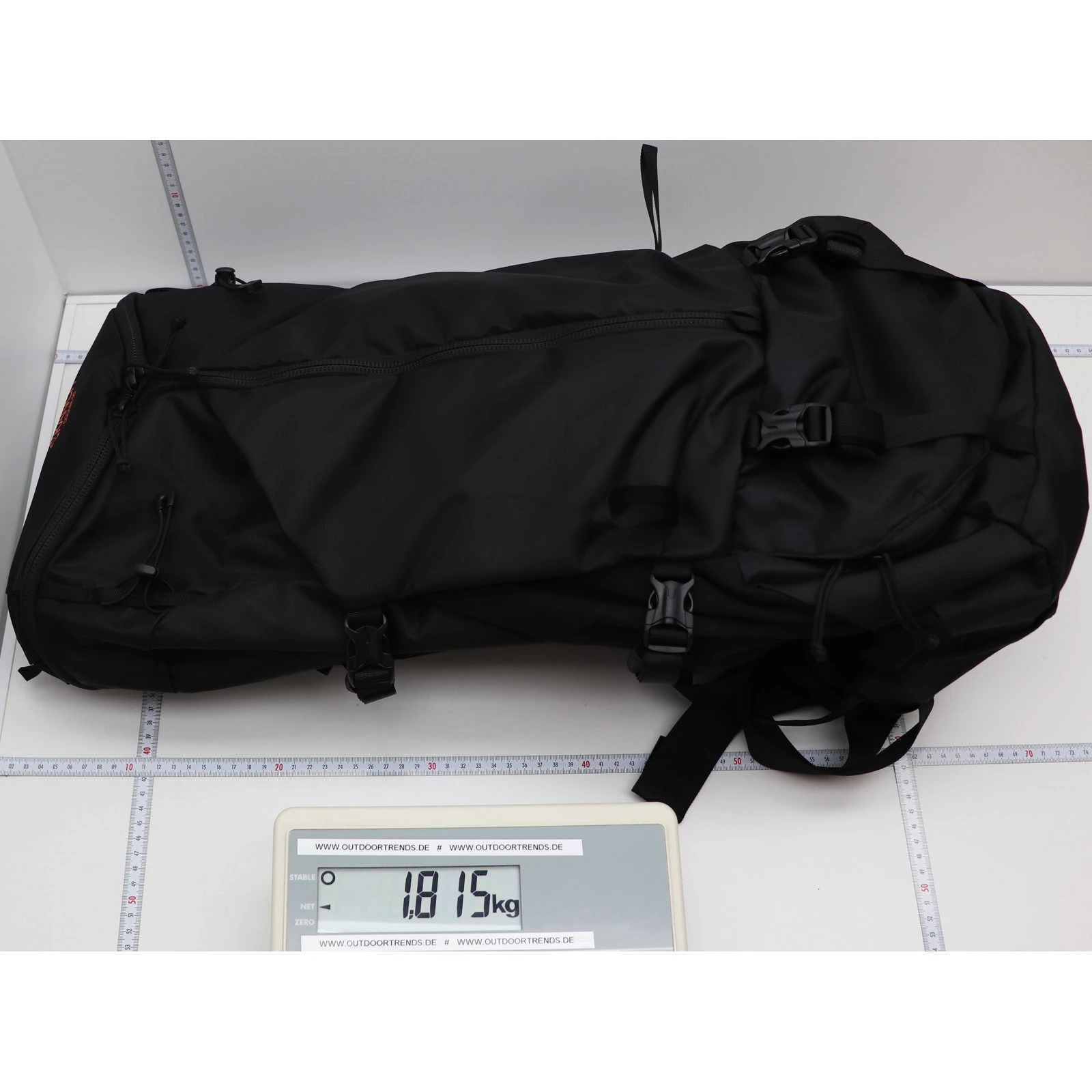 | Merkmale | 2 Reißverschlusstaschen oben, 3-ZIP Reißverschluss ins Hauptfach, Bodenfach mit separatem Zugang von außen, gepolsterter Hüftgurt, gepolsterter Rücken, Halterung für Trinkblase, höhenverstellbarer Brustgurt, Kompressionsriemen unten, Lastkontrollriemen, Pickelhalterung, Schlauchdurchführung für Trinksystem, seitliche Kompressionsriemen, seitliche Stretch-Außentaschen, Stockhalterung, Tragegriff, verstellbare Rückenlänge, zwei große Einschubfächer vorne drauf, zwei Reißverschlusstaschen auf den Hüftflügeln |
