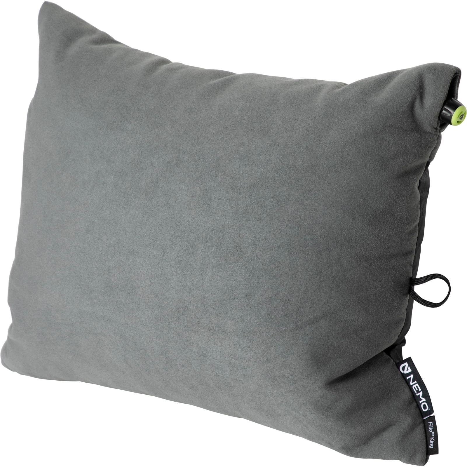 Das Fillo King Campingkissen bringt cleveres Design in ein oft übersehenes Stück Ausrüstung: das einfache Campingkissen. NEMO hat das klassische Kissen so gestaltet, das die Kombination aus einer Luftkammer, einem weichen aber dennoch stabilen Schaumstoff, einem weichen und waschbaren Bezug und einem ergonomischen Ventil eine perfekte Symbiose für einen erholsamen Schlaf ergibt. Das Fillo King hat zudem die Möglichkeit das Kissen je nach gewünschter Polsterung mit Textilien auszustopfen. Unterwegs wird relativ kompakte Ø 13 x 27 cm verpackt.