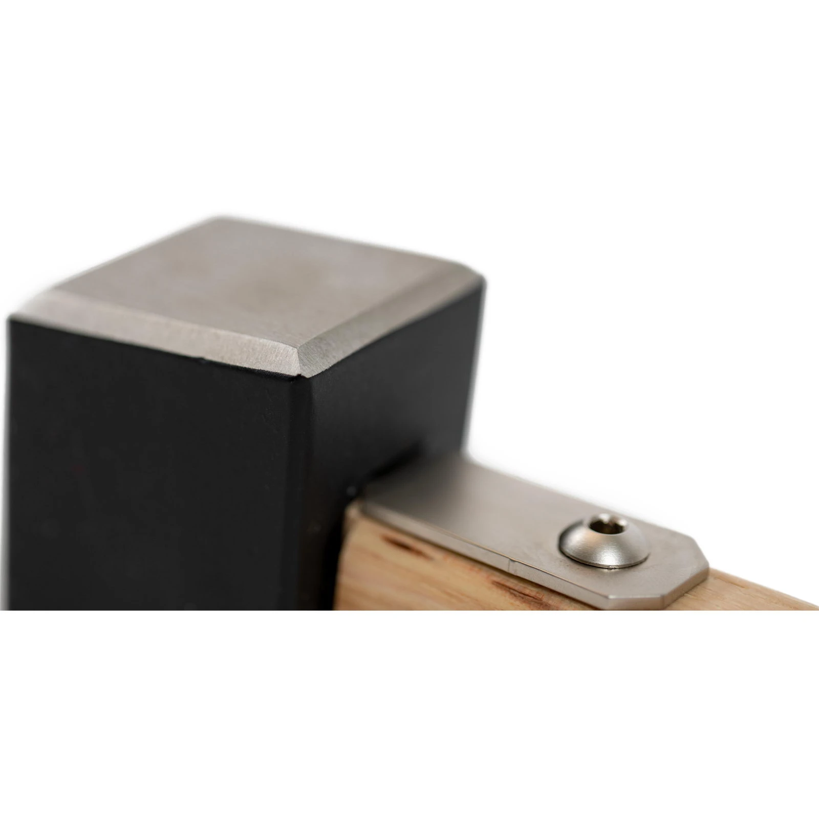 Der Meldr verbindet die Handwerkskunst aus der NEMO-Holzwerkstatt mit einem Hammer für Heringe, und ist markantes Lagerwerkzeug in Erbstückqualität. Der massive Edelstahlgusskopf wird mit Spezialbeschlägen am kunstvoll verjüngten, perfekt ausbalancierten Holzstiel verankert. Ein neues ergonomisches Design und eine schräge Schlagfläche erleichtert das Eintreiben von Heringen oder Pfählen. Die Ästhetik des Hammers wird durch einen Flaschenöffner in Form eines Redtail Hawk vervollständigt, der auch zum Ziehen von Heringen aus dem Boden geeignet ist.