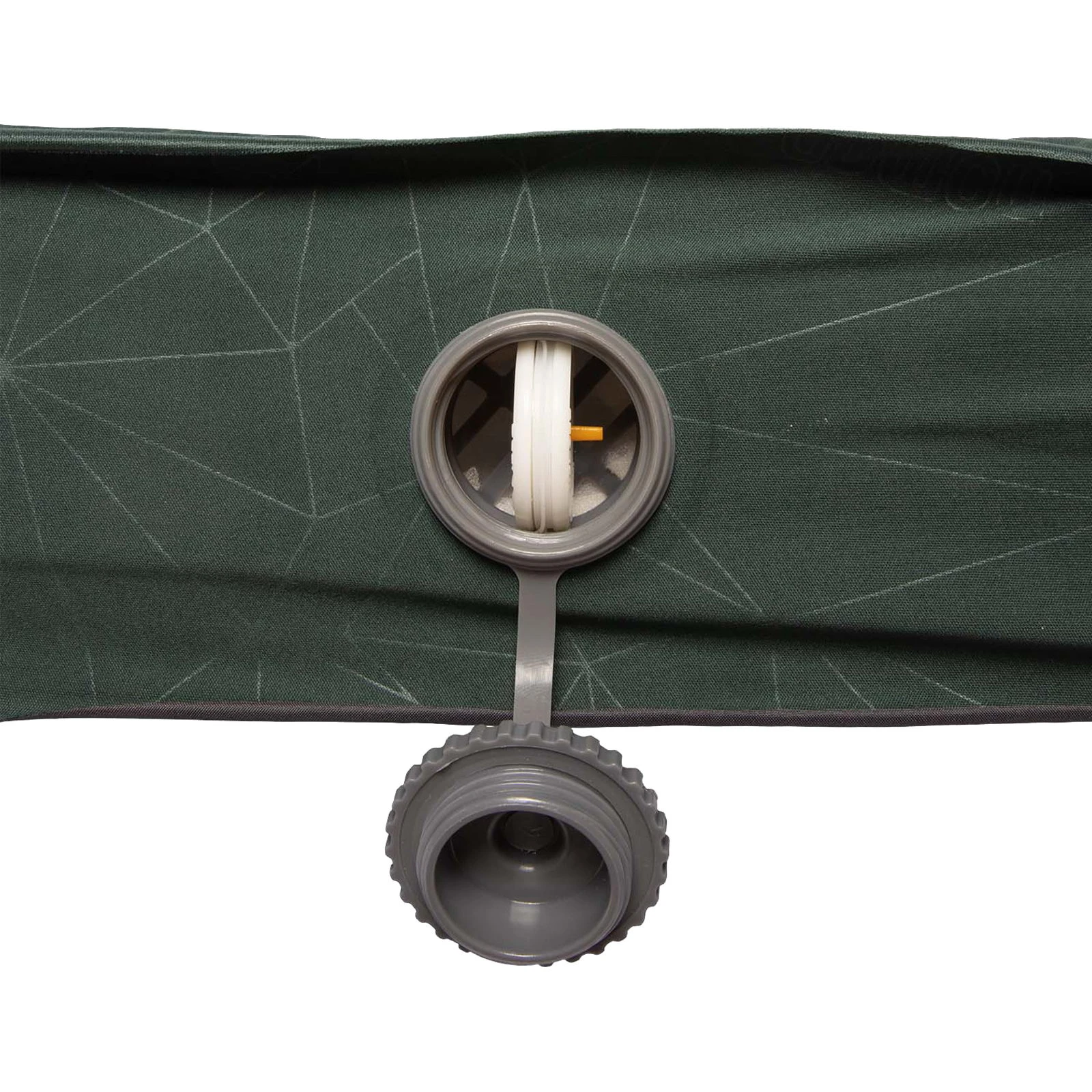 Die Dreamzone Premium Duo 10.0 von Nomad ist die ideale Isomatte für alle, die sich unterwegs im Zelt oder Wohnmobil, aber auch bei Übernachtungen im Haus ultimativen Komfort wünschen. Die Schlafmatte besitzt eine Boxform, also komplett geraden Seitenwänden, so kann die gesamte Schlaffläche optimal genutzt werden, und wenn eine zweite Matte daneben liegt, entsteht dazwischen keine Bettritze. Die Oberseite besteht aus weichem und dehnbarem Polyester, das sich der Körperform anpasst und dadurch alle Bereiche unterstützt. Dieses Material bietet bei einer Doppelmatratze den Vorteil, dass Sie nicht zueinander rollen können oder beim Umdrehen zu viel Bewegung in der Matratze entsteht, was bei Luftmatratzen für zwei Personen oft ein Problem ist. Die Unterseite der Matte ist mit einem Antirutsch-Muster versehen, damit sie auch auf leicht abschüssigem Untergrund nicht abgleitet. Eine umweltfreundliche PFC-freie Imprägnierung sorgt dafür, dass die Matte wasserabweisend ist. Für noch mehr Komfort sorgt bei der Dreamzone Premium Duo 10.0 der 10 cm dicke weiche Schaum im Inneren, dieser besitzt eine hohe Dichte und bietet dadurch eine gute Isolierung. Der Schaum ist aber nicht massiv, sondern horizontal perforiert, es befinden sich also horizontale Luftkanäle darin, was für eine enorme Reduzierung des Gewicht und Packvolumens und besseren Liegekomfort sorgt. Außerdem wird der Schaum antibakteriell behandelt, sodass sich kein Schimmel bilden kann. Die Matte verfügt nicht nur über ein, sondern über zwei Ventile, über die sie aufgeblasen und entleert werden kann. So kann z. B. die Luft, wenn beide Ventile geöffnet sind, schnell entweichen und wenn nur etwas Luft ergänzt oder abgelassen werden soll, genügt ein Ventil.