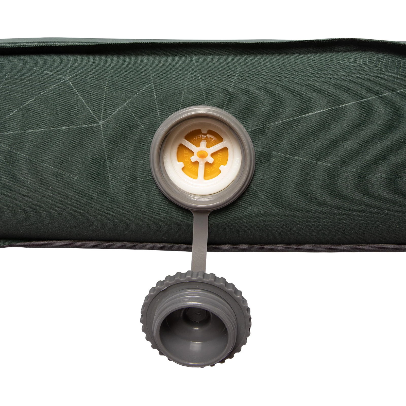 Die Dreamzone Premium Duo 15.0 von Nomad macht es möglich, unterwegs genauso gut zu schlafen wie zu Hause im eigenen Bett. Diese große und 15 cm dicke Matte ist ideal für alle, die sich unterwegs im Zelt oder Wohnmobil, aber auch bei Übernachtungen im Haus ultimativen Komfort wünschen. Die Schlafmatte besitzt eine Boxform, also komplett geraden Seitenwänden, so kann die gesamte Schlaffläche optimal genutzt werden, und wenn eine zweite Matte daneben liegt, entsteht dazwischen keine Bettritze. Die Oberseite besteht aus weichem und dehnbarem Polyester, das sich der Körperform anpasst und dadurch alle Bereiche unterstützt. Dieses Material bietet bei einer Doppelmatratze den Vorteil, dass Sie nicht zueinander rollen können oder beim Umdrehen zu viel Bewegung in der Matratze entsteht, was bei Luftmatratzen für zwei Personen oft ein Problem ist. Die Unterseite der Matte ist mit einem Antirutsch-Muster versehen, damit sie auch auf leicht abschüssigem Untergrund nicht abgleitet. Eine umweltfreundliche PFC-freie Imprägnierung sorgt dafür, dass die Matte wasserabweisend ist. Für noch mehr Komfort sorgt bei der Dreamzone Premium Duo 15.0 der 15 cm dicke weiche Schaum im Inneren, dieser besitzt eine hohe Dichte und bietet dadurch eine gute Isolierung. Der Schaum ist aber nicht massiv, sondern horizontal perforiert, es befinden sich also horizontale Luftkanäle darin, was für eine enorme Reduzierung des Gewicht und Packvolumens und besseren Liegekomfort sorgt. Außerdem wird der Schaum antibakteriell behandelt, sodass sich kein Schimmel bilden kann. Die Matte verfügt nicht nur über ein, sondern über zwei Ventile, über die sie aufgeblasen und entleert werden kann. So kann z. B. die Luft, wenn beide Ventile geöffnet sind, schnell entweichen und wenn nur etwas Luft ergänzt oder abgelassen werden soll, genügt ein Ventil.