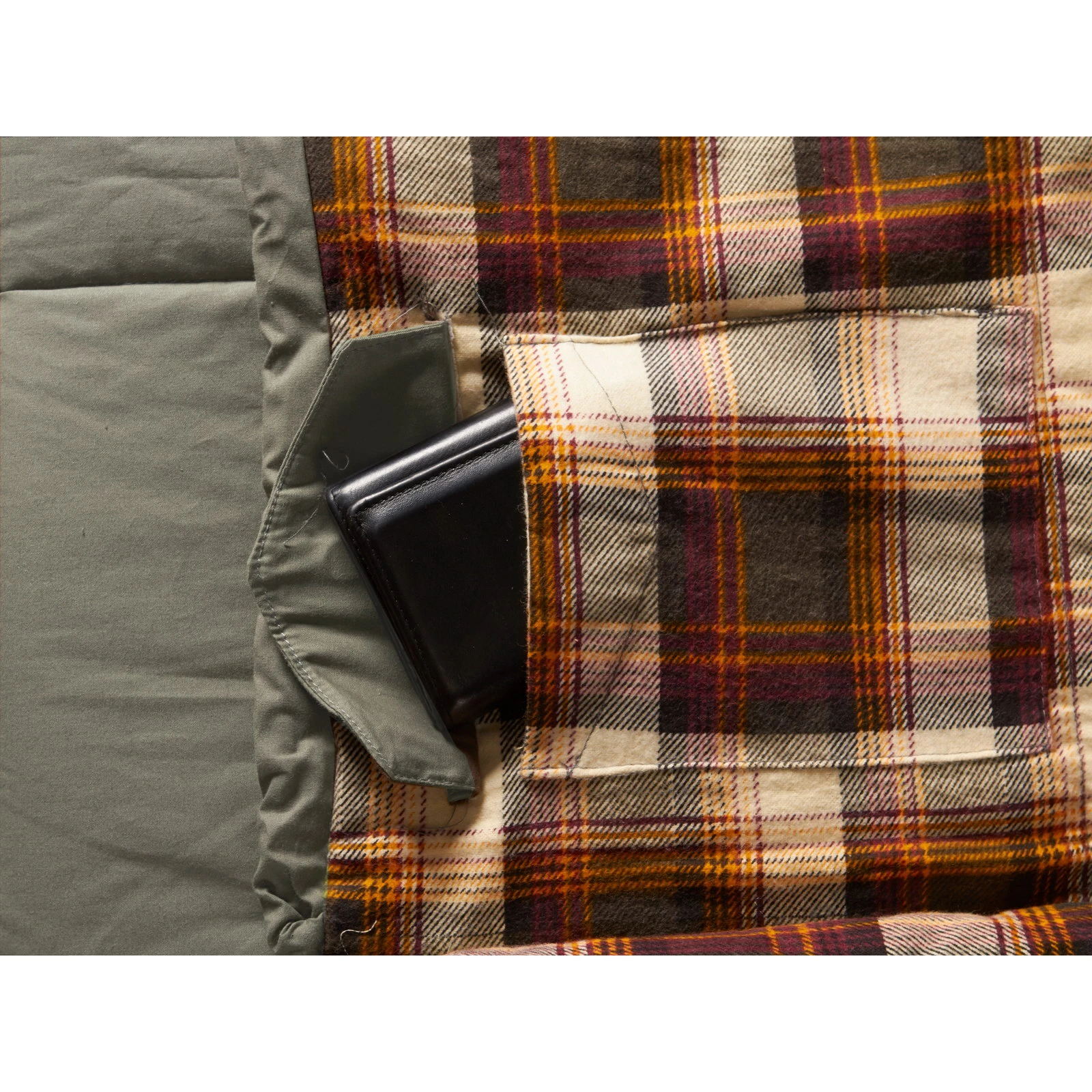 Der Almond +10° Blanket von Nordisk ist ein vielseitig einsetzbarer Deckenschlafsack ideal für warme Jahreszeiten oder den Gebrauch in geschützten Räumen. Bei komplett geöffnetem Reißverschluss wird der Schlafsack zu einer komfortablen Decke. So kann der Almond +10 Blanket wahlweise als geräumiger Schlafsack oder als Decke verwendet werden. Die hochwertige Norguard Unlimited Füllung, umhüllt von einer gemütlichen Jacquard-Hülle und einem weichen Innengewebe, dessen Futter als weiches Flanell verarbeitet ist. Sowohl Außen- als auch Innenmaterial bestehen aus 100% Bio-Baumwolle, welches sehr angenhem auf der Haut liegt. Ein praktisches Detail ist die Innentasche mit Magnetverschluss und der Packsack, welcher sich auch als Kopfkissenfach verwenden lässt.