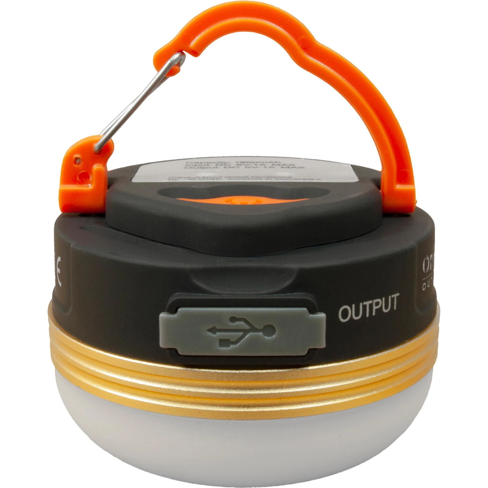 Leichte, kompakte und leuchtstarke LED-Campinglampe (300 Lumen) mit Powerbankfunktion von Origin Outdoors. Durch das diffuse Kunststoffgehäuse entsteht ein angenehmes indirektes Licht, welches gleichmäßig 360° ausstrahlt. Als kleine Tischlampe sorgt sie wiederum für ein schönes Ambiente. Der ausklappbare Aufhängebügel mit Schnappverschluss bietet viele Möglichkeiten, die Lampe schnell und unkompliziert aufzuhängen. Der am Sockel verbaute Magnet ermöglicht es, die Lampe auch an metallischen (magnetischen) Gegenständen zu befestigen. Sie verfügt über 2 Helligkeitsstufen und einen Stroboskop-Modus. Dank eingebautem 1800 mAh Li-Ion Akku und Mikro-USB-Ausgang kann man sie auch als Powerbank nutzen. Über den USB-Eingang ist sie problemlos wiederaufladbar. EIn USB Kabel ist im Lieferumfang enthalten.