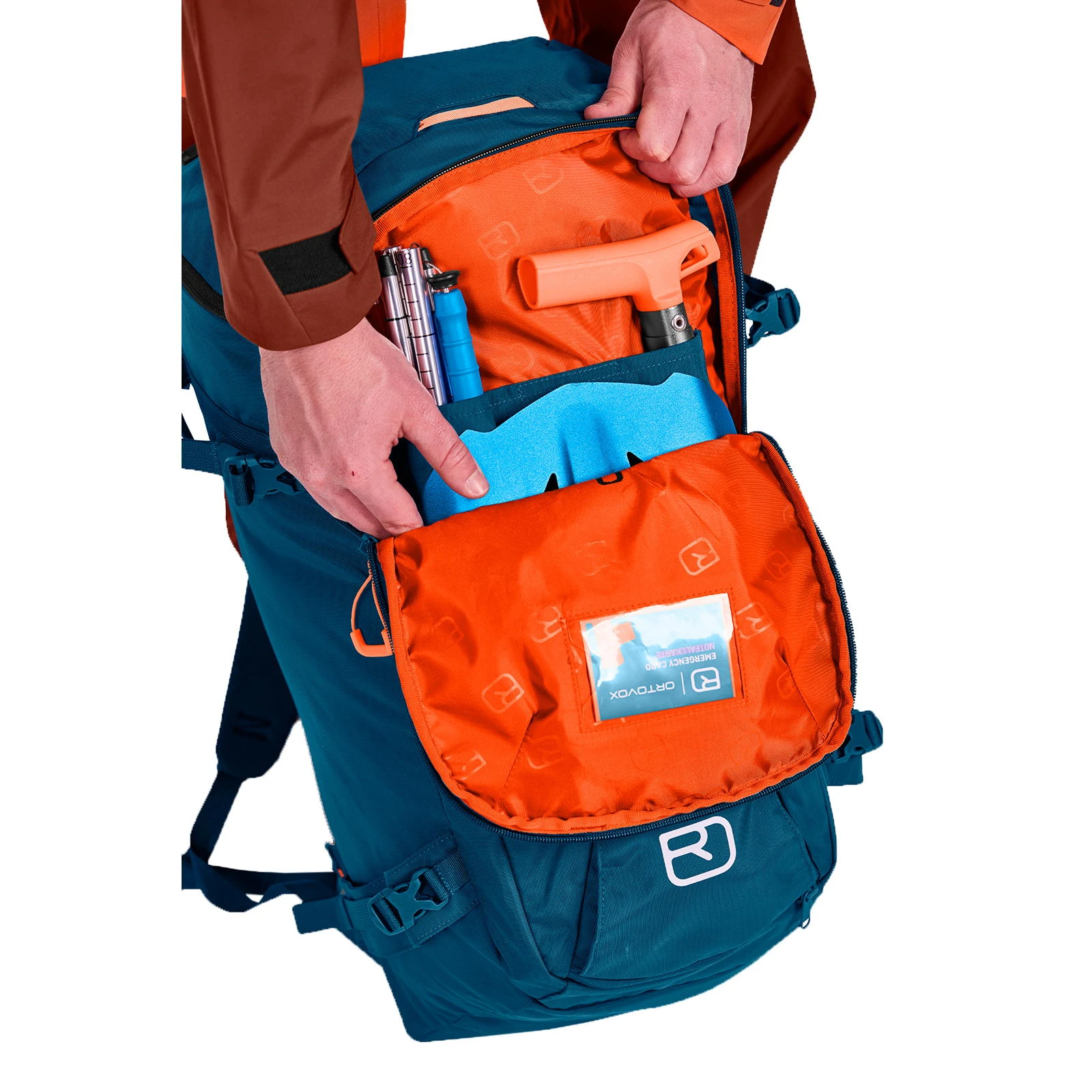 | Merkmale | Bright Inside, Brustgurt mit Signalpfeife, diagonale Skibefestigung, Einschubfach innen, Frontfach mit Reißverschluss und Organizer für Notfallausrüstung, gepolsterter Hüftgurt, Halterung für Trinkblase, Hauptfach über Rückenöffnung zugänglich, höhenverstellbarer Brustgurt, Klarsicht-Kartenfach, Lastkontrollriemen, Materialschlaufe an einem Hüftflügel, Materialschlaufen auf den Schulterträgern für Brille etc., Materialschlaufen vorne, Ortovox Emergency Card innen, Pickelhalterung, Reißverschlussfach auf dem Deckel außen, Reißverschlussfach auf einem Hüftflügel, Reißverschlussfach innen, Schlauchdurchführung für Trinksystem, Schlüsselhalterung, Schneeschuhbefestigung, Seilbefestigung oben, seitliche Kompressionsriemen, seitliche Skibefestigung (Skibreite max. 150 mm), Snowboardbefestigung, Steigeisenbefestigung, Stockbefestigung, Trageschlaufe hinten oben, verstaubares Helmnetz in separatem Reißverschlussfach vorne unten |