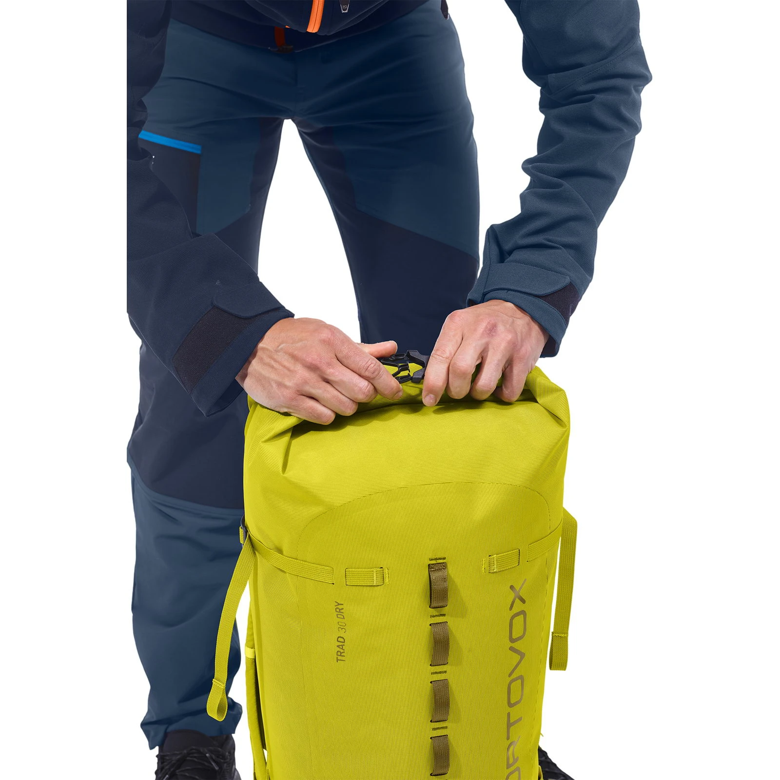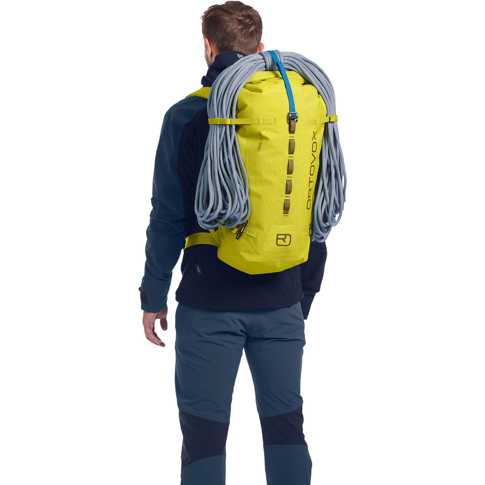 Egal ob in den Alpen oder den großen Wänden der Welt unterwegs: In langen, alpinen Klettertouren kann unerwartet das Wetter umschlagen. Kein Problem für den Ortovox TRAD 30 DRY, denn er bringt alles im Inneren trocken und gut geschützt ans Ziel.