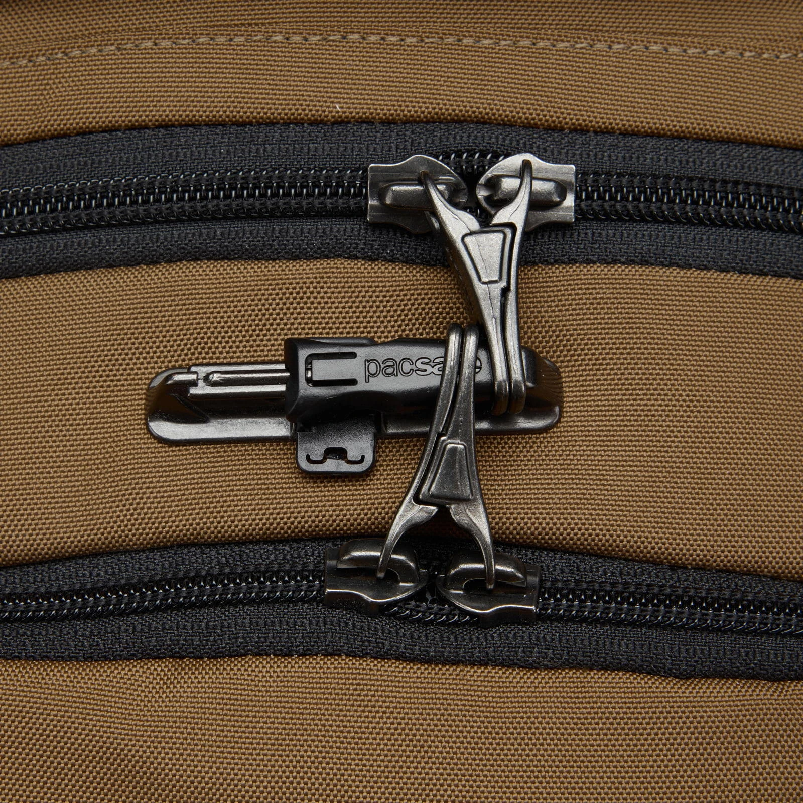Der Metrosafe X 25 L von pacsafe ist ein geräumiger 25-Liter-Rucksack mit smarten Sicherheitsfunktionen. Das schlanke Design macht den Pendlerrucksack zum perfekten Begleiter durch belebte Bereiche wie U-Bahn, Städte oder Flughäfen. Ausgestattet mit den besten pacsafe Anti-Diebstahl-Merkmalen, wie schnittfestem Gewebe, abschließbaren Reißverschlüssen, RFID-blockierendes Fach und die Sicherungsmöglichkeit an Gegenständen schützt der Rucksack die Wertsachen und Identität. Ineinandergreifende Reißverschlussschieber und das Roobar Sport Verriegelungssystem können können mehrere Fächer verriegeln und den Inhalt mit einem zusätzlichen Schloss (nicht im Lieferumfang enthalten) sichern. Das RFIDsafe Fach verhindert das kontaktlose Auslesen von Daten und mit dem PopNLock security clip Verschluss lässt sich die Tasche schnell und unkompliziert an einem festen Gegenstand oder Objekt sichern. Die große Reißverschluss-Öffnung macht es einfach, den Inhalt in allen Fächern und Taschen gut zu organisieren. Separate, weich gepolsterte Einschubfächer bieten Platz für einen 16″-Laptop und ein 10″-Tablet. Außerdem bietet der Metrosafe X 25 L eine versteckte Reißverschlusstasche auf der Rückseite, zwei große Frontfächer, zwei seitliche Einschubtaschen für Trinkflaschen und eine Gurtschlaufe zum Befestigen am Koffer. Der Laptoprucksack wird aus recycelten Plastikflaschen hergestellt und ist zu 100% PFC-frei und wasserabweisend.
