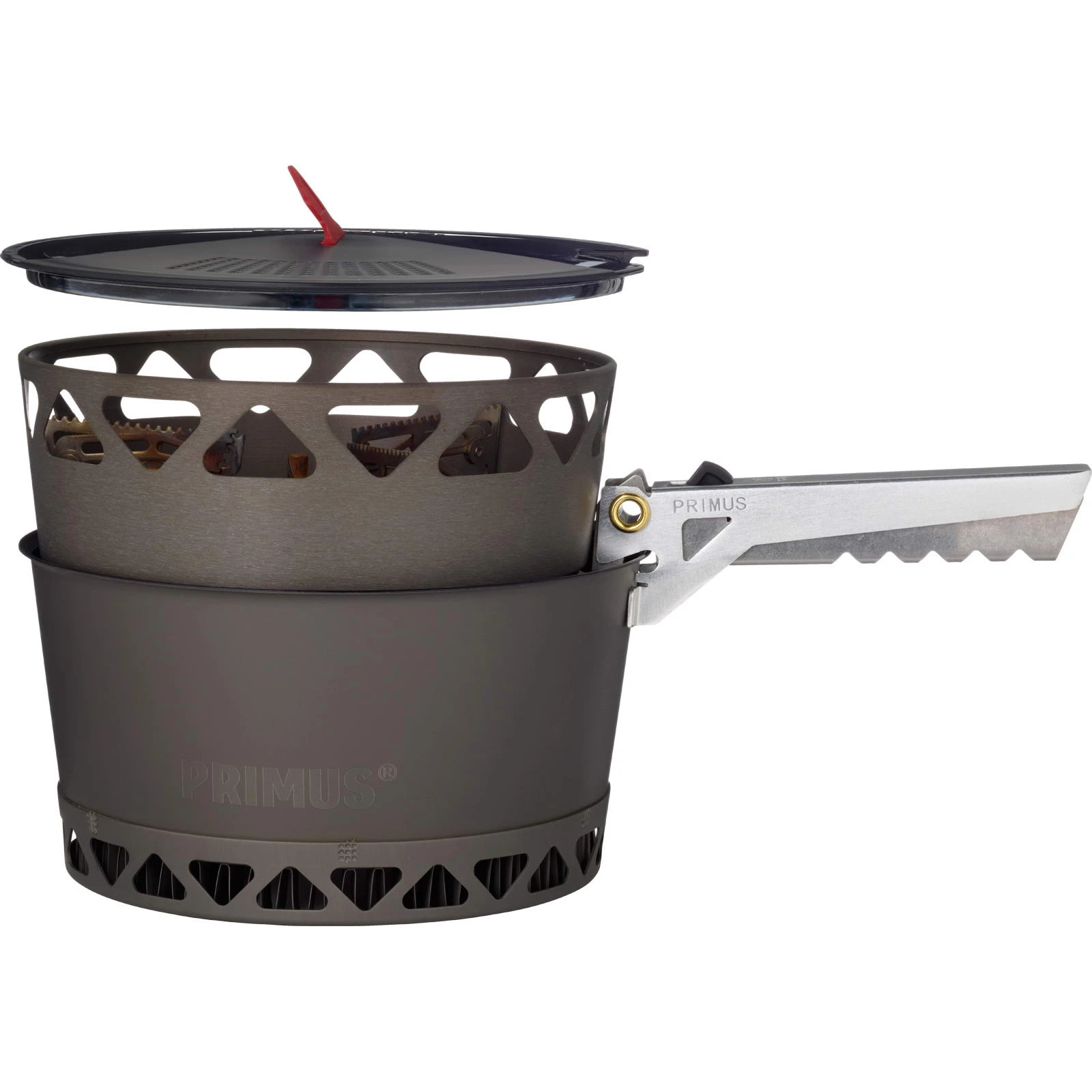 Beim Kocherset PrimeTech 2,3 von Primus ist der Gasbrenner in den Windschutz integriert, was den Kocher sehr stabil macht. Leicht zusammen zu bauen und schnell einsatzbereit. Mit relativ leisem Brenner. Die Töpfe aus hart eloxiertem Aluminium sind sehr wärmeleitfähig und einer davon ist mit dem speziellen Wärmeleitsystem für beste Kochzeiten ausgestattet. Dieser Topf hat außerdem eine keramische Innenbeschichtung zum einfachen Kochen und Pflegen. Der transparente Deckel hat eine praktische Siebfunktion.
