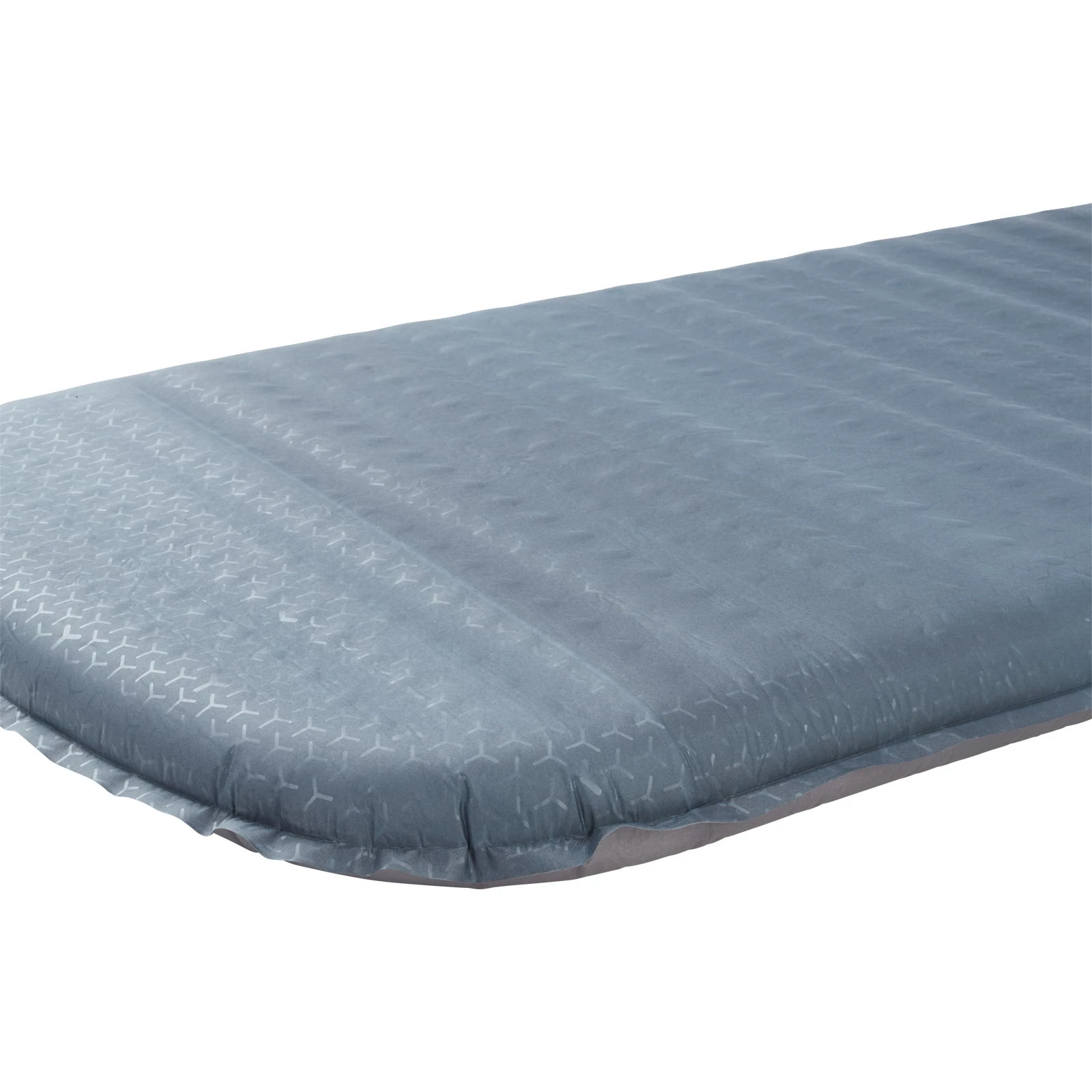 Die Exosphere 3.5 von Rab ist eine zuverlässige, selbstaufblasende Schlafmatte, die mit einer isolierenden X-Core™ Schaumstofffüllung ausgestattet ist und für einen komfortablen Schlaf sorgt. Dank ihrer Strapazierfähigkeit und einfachen Handhabung ist sie ideal für Campingausflüge oder Abenteuer mit Übernachtung. Dank des selbstaufblasenden X-Core™ Schaumstoffsystems ist der Schlafplatz im Handumdrehen fertig eingerichtet. In der gewichtssparenden dreidimensionalen Wabenstruktur des komfortablen Stützsystems wird viel wärmende und stabilisierende Luft eingeschlossen, die vor aufsteigender Kälte schützt. Das spart Gewicht und reduziert das Packmaß, schließt aber auch Luft zur Erhöhung der Wärme ein und trägt so zum R-Wert der Matte von 3,8 bei. Die Matte ist mit einem flachen Zwei-Wege-Ventil ausgestattet und bläst sich im Handumdrehen auf und lässt sich ebenso schnell wieder zusammenrollen. Die großzügige rechteckige Form ermöglicht einen bequemen Schlaf in jeder Schlafposition. Die Isomatte wird mit Reparaturset und aufrollbarem Packsack geliefert.