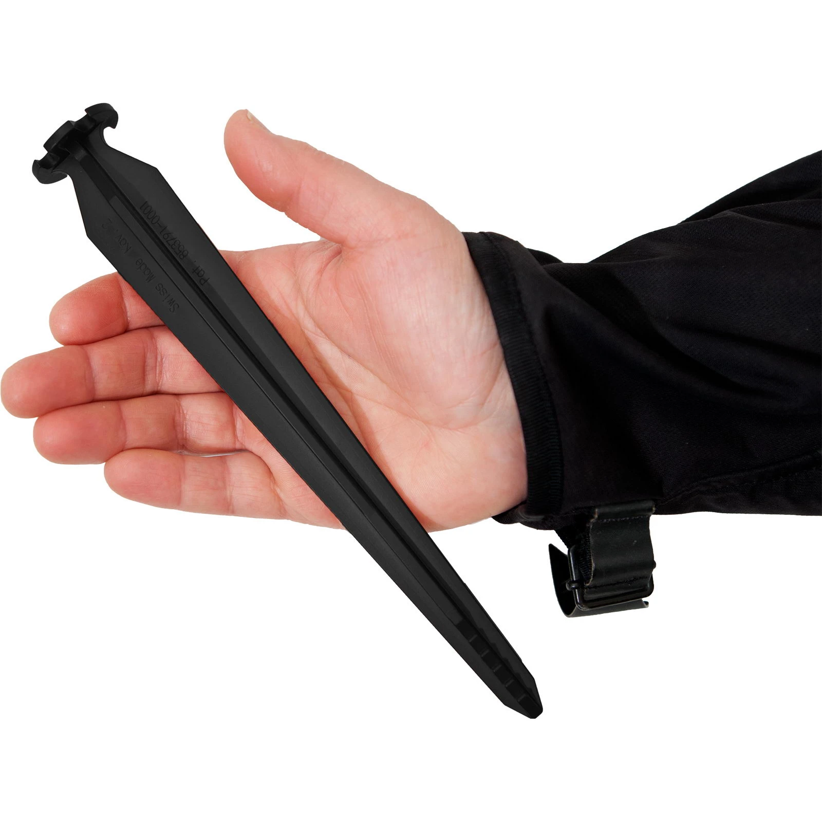 Die Recycling-Heringe bieten aber noch weitere Vorteile. Sie sind ultraleicht, stoßfest, supersicher und schonen dazu die Umwelt. Ihre spitz zulaufende Form ermöglicht ein einfaches Einschlagen, ohne dass scharfe Kanten entstehen, die das Zeltgewebe beschädigen. Ihr x-förmiger Querschnitt mit Sägezahnprofil sorgt für sicheren Halt in unterschiedlichsten Böden. SwissPiranha-Heringe werden flach im Boden versenkt, wodurch keine Stolper- und Verletzungsgefahr besteht. Ideal für Familien, da sich spielende Kinder nicht am Hering verletzen können. Zusätzlich verdichtet der flache Kopf den Untergrund und sorgt so für eine deutlich höhere Ausreißkraft. Einkerbungen halten die Zeltleinen zuverlässig am Platz und sorgen für beste Verankerung. Verschmutze Heringe können in der Spülmaschine gereinigt werden und um den Wertstoffkreis vollkommen zu schließen, werden ausgediente BlackFisk-Heringe von SwissPiranha wiederverwertet.