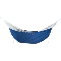 Der Moonquilt von Ticket on the Moon hält den Rücken und deine Beine warm, während man sich in der Hängematte frei bewegen kann. Bei windigem Wetter kann man den synthetischen Drei-Jahreszeiten-Underquilt mit dem Reißverschluss schließen, so dass er einen selbst und die Hängematte vollständig umhüllen. Mit den zwei Reißverschlüssen und den verstellbaren Gummikordeln kann man den Grad der Isolierung bequem von der Hängematte aus einstellen. Das Packen ist mit dem intelligenten Kompressionsbeutel, der neben dem Moonquilt, auch eine Hängematte, ein Moskitonetz und die Aufhängungen fasst, ein Kinderspiel – so kann man das System in weniger als einer Minute, in einem Rutsch, auf- und abbauen (Tarp, Moskitonetz, etc. als Zubehör erhältlich). Kleine Taschen an den Ecken sorgen dafür, dass Kordeln und Minikarabiner ordentlich verstaut sind, wenn man den Moonquilt als Schlafsack oder Decke, verwenden möchte.