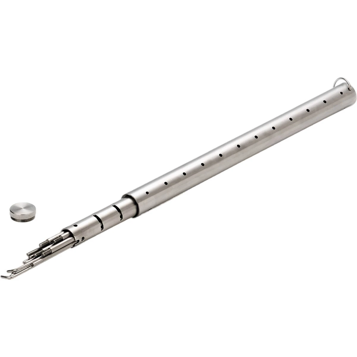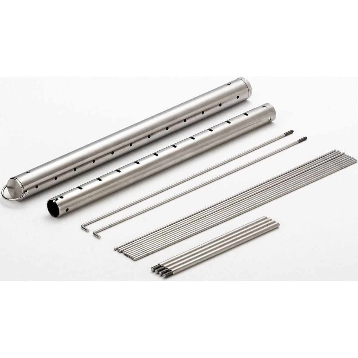 Ein Grill der Sonderklasse von grilliput. Kann für sich in Anspruch nehmen, einer der kleinsten beim Transport zu sein. Handwerklich hervorragend gefertigt und komplett aus Edelstahl. Der Minigrill ist zusammengelegt nur 28,9 cm lang und an der breitesten Stelle nur 2,8 cm (Rohrdurchmesser ist 2,2 cm). Zum Aufbau werden die Bauteile aus dem Außenrohr entnommen, die Stäbe der Grillfläche in die Rohre eingelegt und fixiert. Füße einschrauben – fertig. Die Grillfläche ist dann 13,5 cm hoch und mit 25,5 x 23,2 cm ausreichend dimensioniert. Die 1. Wahl bei Reiseausrüstung mit Anspruch an minimales Packmaß in hervorragendem Finish. Auch als Geschenk ein echter Tipp.