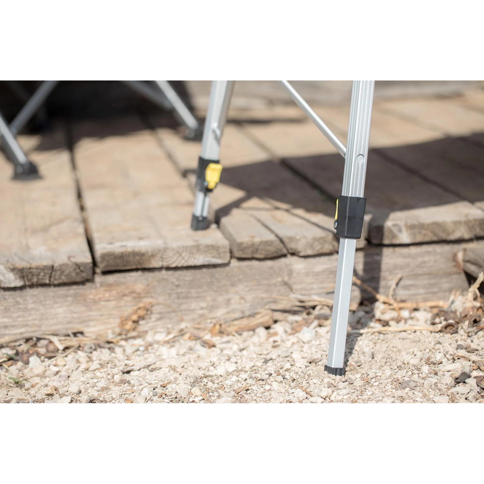 UQUIPs Falttisch Variety in Größe L ist einfach aufzubauen, äußerst stabil und extrem leicht. Aber vor allem ist er eines: höhenverstellbar. Egal, ob man ihn auf einen unebenen Untergrund stellt oder einfach nur den Kindern die Chance geben möchten, richtig am Tisch sitzen zu können – alle vier Tischbeine sind einzeln höhenverstellbar. So ist UQUIPs Variety L immer auf der Höhe. Für mehr Vielfalt beim Camping.