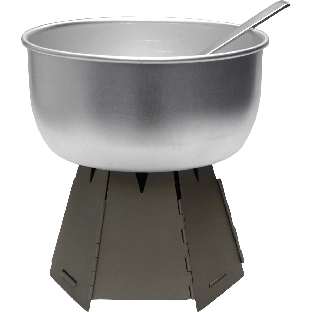 Der ultimative Mini Outdoor-Ofen. Kommt extrem flach gefaltet mit unschlagbarem Packmaß aus. Dann aber entfaltet er seine ganze ‘Größe’. Die Bauteile sind schnell zusammengeklappt und halten auch große Hitze aus. Einheizen kann man mit kleinen Holzstücken, Moos oder anderem rennmaterial. Natürlich passt auch ein Spirituskocher (z. B. Vargo Decagon) oder ein Esbitkocher in den Hexagon. Dann fungiert dieser quasi als Windschutz. Einen Topf (optimal bis maximal 1,4 l) dann einfach oben auf den Ofen stellen. Durch die konische Form zieht der Ofen sehr gut und die Front’tür’ erlaubt ein gezieltes Nachlegen bzw. eine Regulierung der Luftzufuhr, um die Brennleistung zu erhöhen.