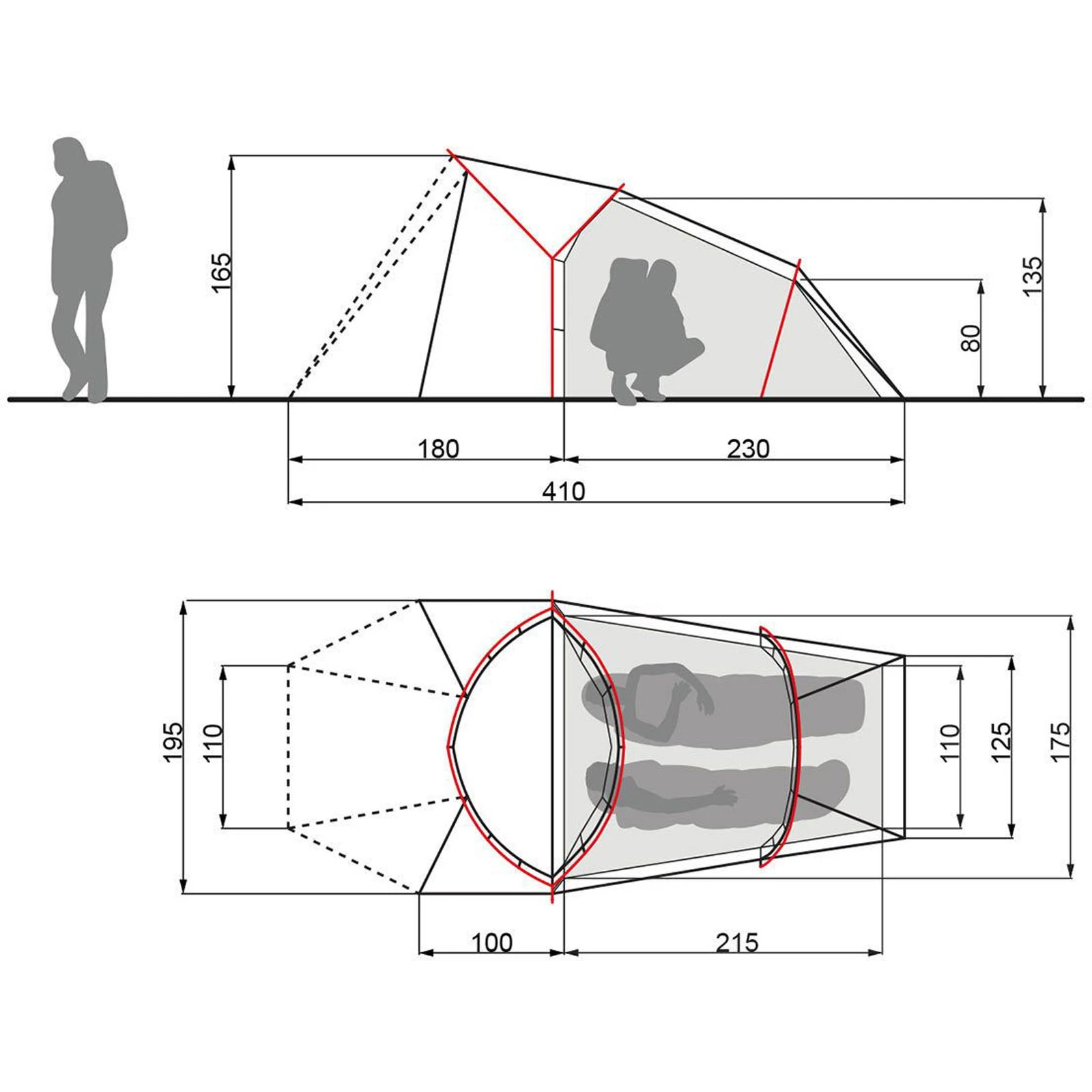 | Maße Außenzelt ca. | 410 x 195 x 165 cm |