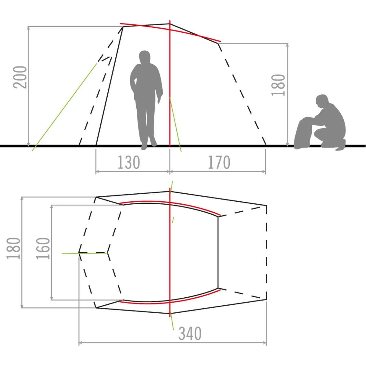 Merkmale: passt auf gängige Minivans; hervorragende Belüftung durch Netzfenster; steht auch ohne Fahrzeug; steile, leicht bedienbare Eingänge; 6,1 m² Grundfläche