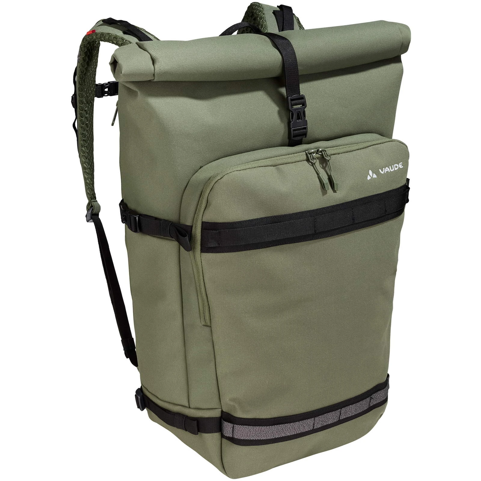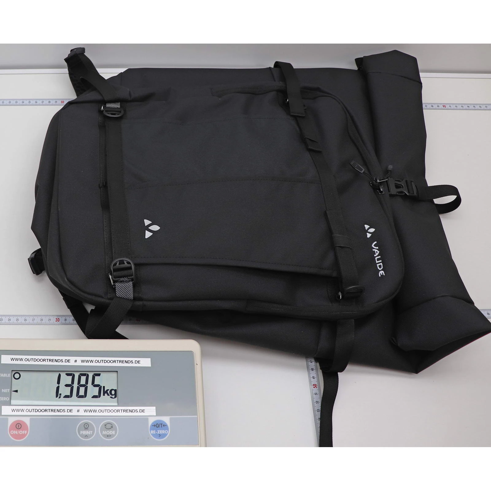 Perfekt fürs Commuting! Der ExCycling Pack von VAUDE ist ein echtes Organisationswunder – und ideal für Radpendler, Kuriere und alle anderen, die einen überaus flexiblen, vielseitigen und schnell an die jeweiligen Bedürfnisse anpassbaren Rucksack mit einem großen Raumangebot suchen. Sein Hauptfach ist mit einem praktischen Rollverschluss ausgestattet, der sich der jeweiligen Zuladung perfekt anpassen lässt – da darf der Einkauf auch mal größer ausfallen! Daneben ist der VAUDE ExCycling Pack ein rollendes Büro: Er verfügt über ein geräumiges Laptopfach, auf das auch von außen zugegriffen werden kann. Dazu kommt ein Organisationsfach für Dokumente und Wertsachen sowie ein separates Fach für Smartphones, das ebenfalls von außen zugänglich ist. Mit mehr als 30 Liter Volumen kommt der ExCycling Pack auch mit großen Zuladungen problemlos zurecht, eine Regenhülle wappnet den Commuter-Rucksack gegen plötzliche Regengüsse. Dieses Produkt ist mit Eco Finish umweltfreundlich wasserabweisend ohne Fluorcarbone (PFC) hergestellt. Der ExCycling Pack kann mit dem OSRAM LED Light Me Up Kit ausgerüstet werden. Das Lichtleitersystem sorgt für aktive Beleuchtung bei Dunkelheit und schlechten Lichtsituationen.