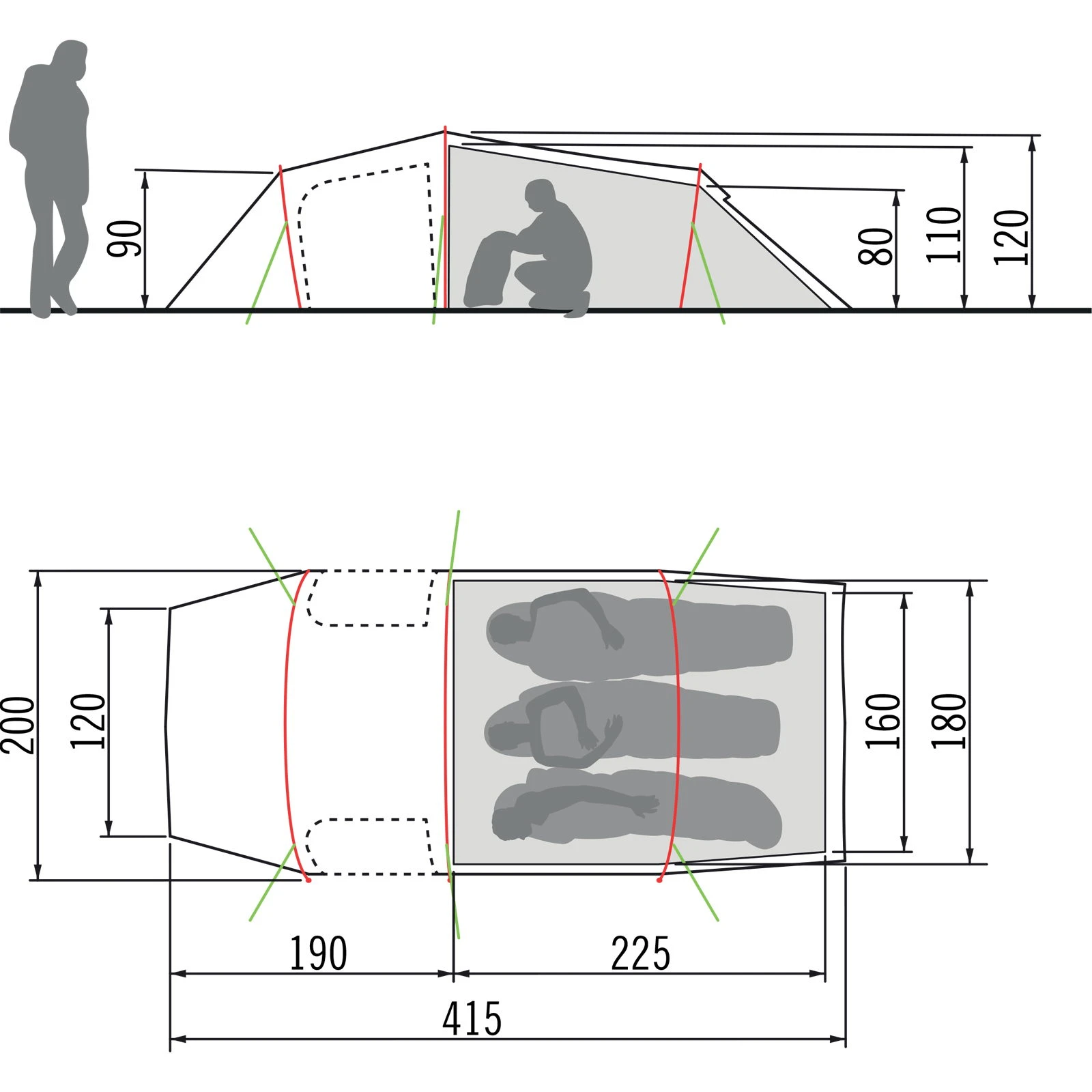 | Maße Außenzelt ca. | 415 x 200 x 120 cm |