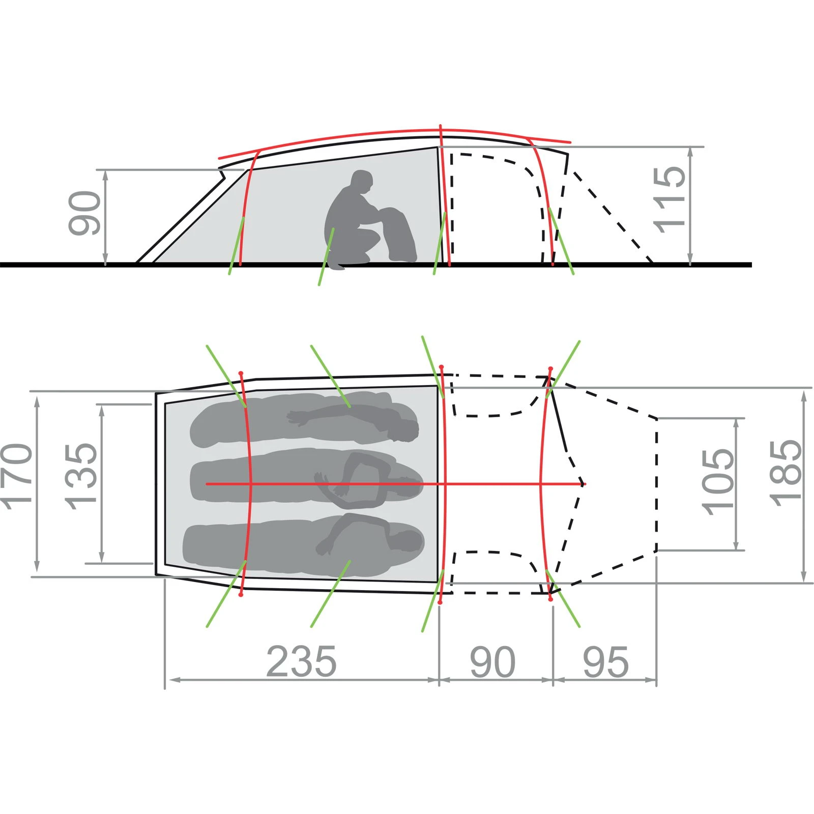 | Maße Außenzelt ca. | 425 x 185 x 120 cm |