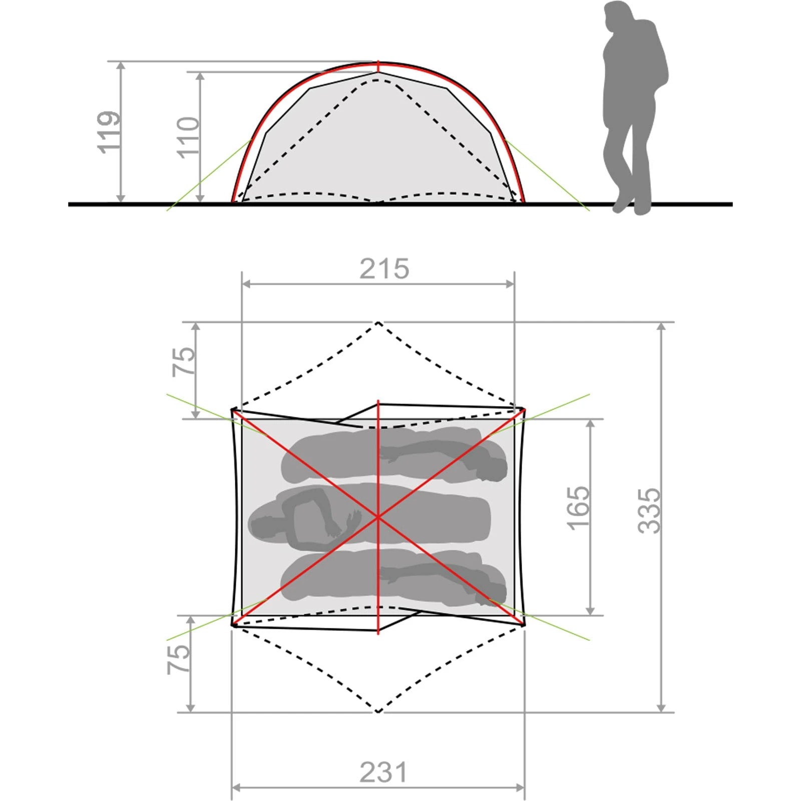 | Maße Außenzelt ca. | 335 x 231 x 119 cm |