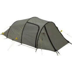Das Outpost 3 von Wechsel Tents ist ein sehr geräumiges und komfortables Kleinfamilienzelt. Der asymmetrische Grundflächenschnitt des Innenzeltes und die komfortable Höhe lassen längere Aufenthalte im Zelt zu. Das Innenzelt hat eine Liegelänge von 270 cm, das ist einmalig! Wenn mehr Platz in der Apsis benötigt wird, kann der vordere Teil des Innenzeltes mit einem Handgriff vom Aussenzelt gelöst werden und einfach nach hinten geworfen werden. Damit steht in kurzer Zeit eine Apsisgrundfläche von 188 x 203 cm und eine Höhe von 120 cm zur Verfügung. Damit wird die geringe Stellfläche des Outpost 3 optimal ausgenutzt. Im Innenzelt befinden sich viele Seitentaschen. Der seitliche Eingang und ein vorderer Eingang machen das Handling mit Gepäck einfach. Bei aufgerolltem Vordereingang bietet sich ein hervorragender Panoramablick aus dem Zelt. Bei all dem Komfort ist das Outpost 3 dennoch ein leichtes Zelt mit geringem Packmaß und geradezu hervorragend für Radwanderungen geeignet. Im Vergleich zum Modell bis 2018 verzichtet Wechsel Tents auf die Dachlüftung im Apsisbereich.