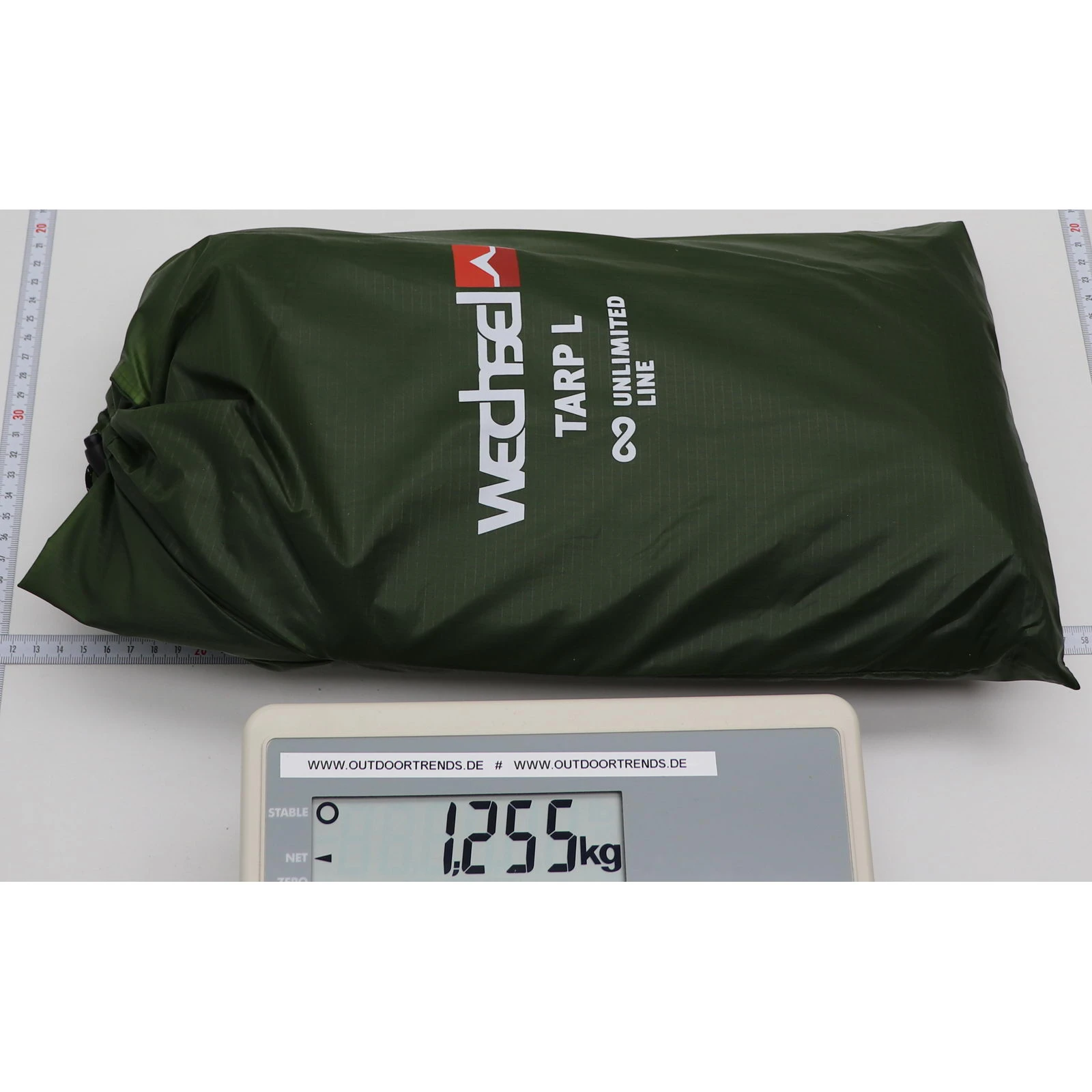 Das Tarp L aus der Unlimited Line von Wechsel Tents mit den Abmessungen 400 x 435 cm ist ein 17,4 m² großes, rechteckiges Universalüberdach. Vielfache Abspannmöglichkeiten bieten einen weiten Einsatzbereich: vom Zusatzdach über Sonnenschutz, bis hin zum Ersatzzelt. Es kann gut an Bäumen oder Pfählen angehangen oder auch mit Aufstellstangen (nicht im Lieferumfang) einzeln verwendet werden. Alle Abspannpunkte sind mit Gurtband verstärkt und mit festen Messingösen versehen. Abspannleinen werden mitgeliefert. Mit Aufstellstangen aus dem Zubehörprogramm lässt sich das Tarp individuell aufrichten.